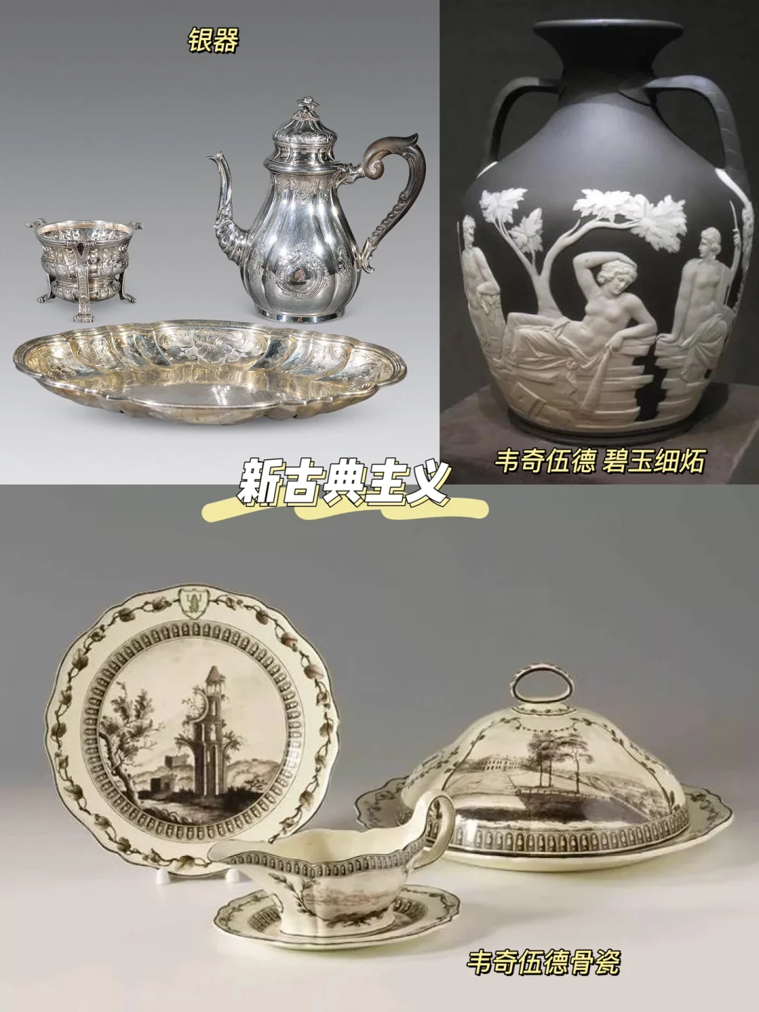 ⚜️金银器趋近于古罗马的青铜器外形和镶嵌工艺,陶瓷则以韦奇伍德的骨质瓷器和碧玉细炻器遥遥领先。