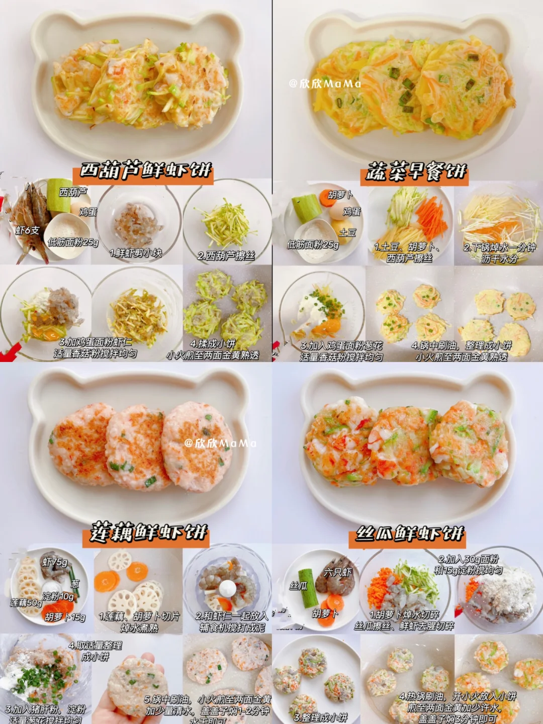 今天来分享一下平时给小欣欣做的24款简单易上手的手指食物~有辅食小饼,有虾有肉~营养满满~每款味道都很不错,麻麻们赶紧和我一起做起来吧,总有一款合适你😋