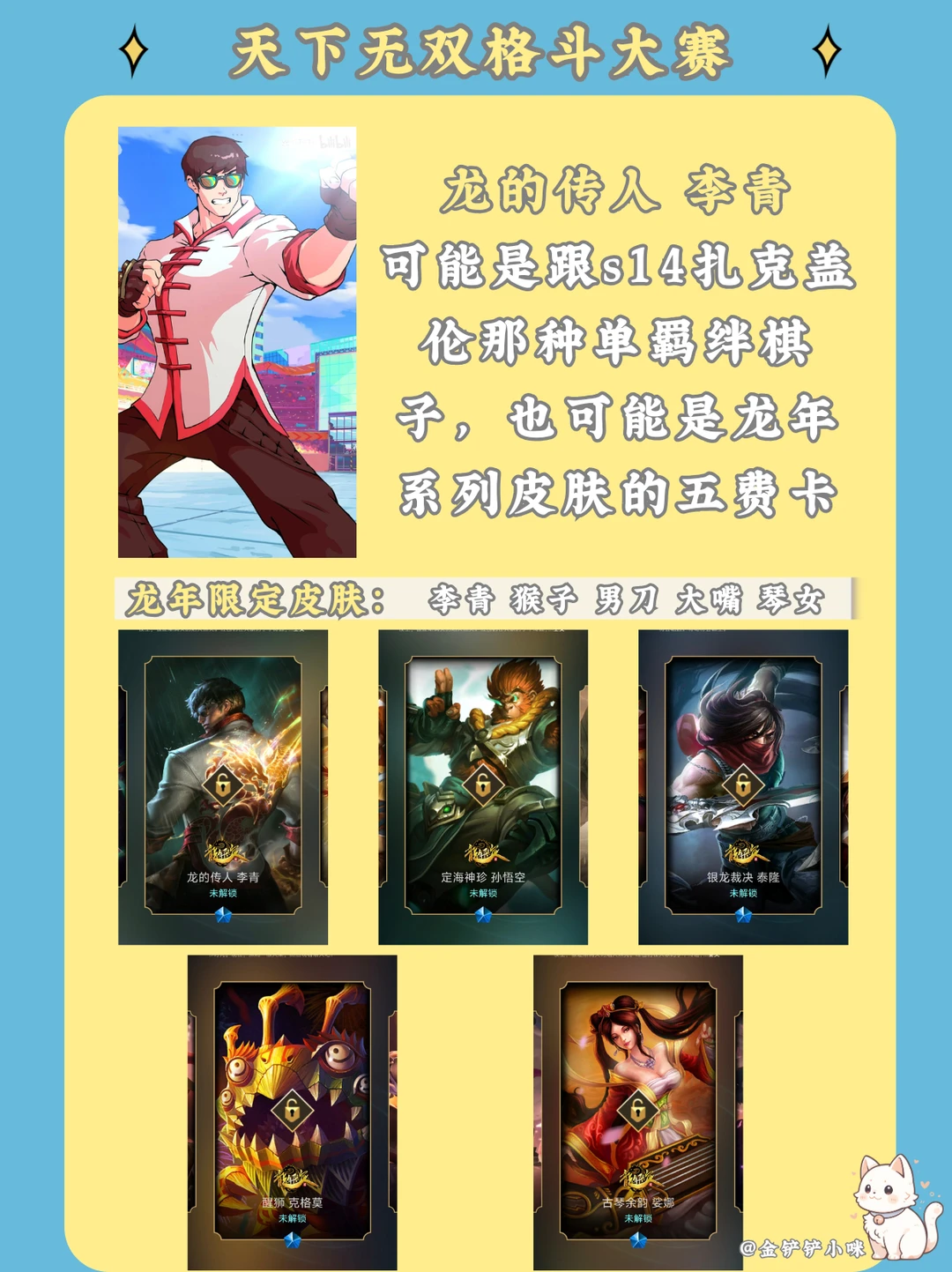 🔴视频可得知情报,第一是龙年系列皮肤李青,形象致敬了李小龙,李青应该是一张五费卡