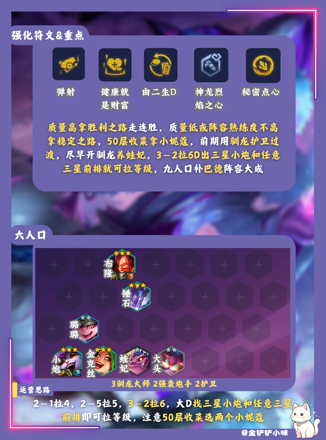 2️⃣阶段2-1拉4,2-5拉5,拿胜利之路就走连胜,稳定之路装备不好就走连败,选秀优先抢小炮布隆装备