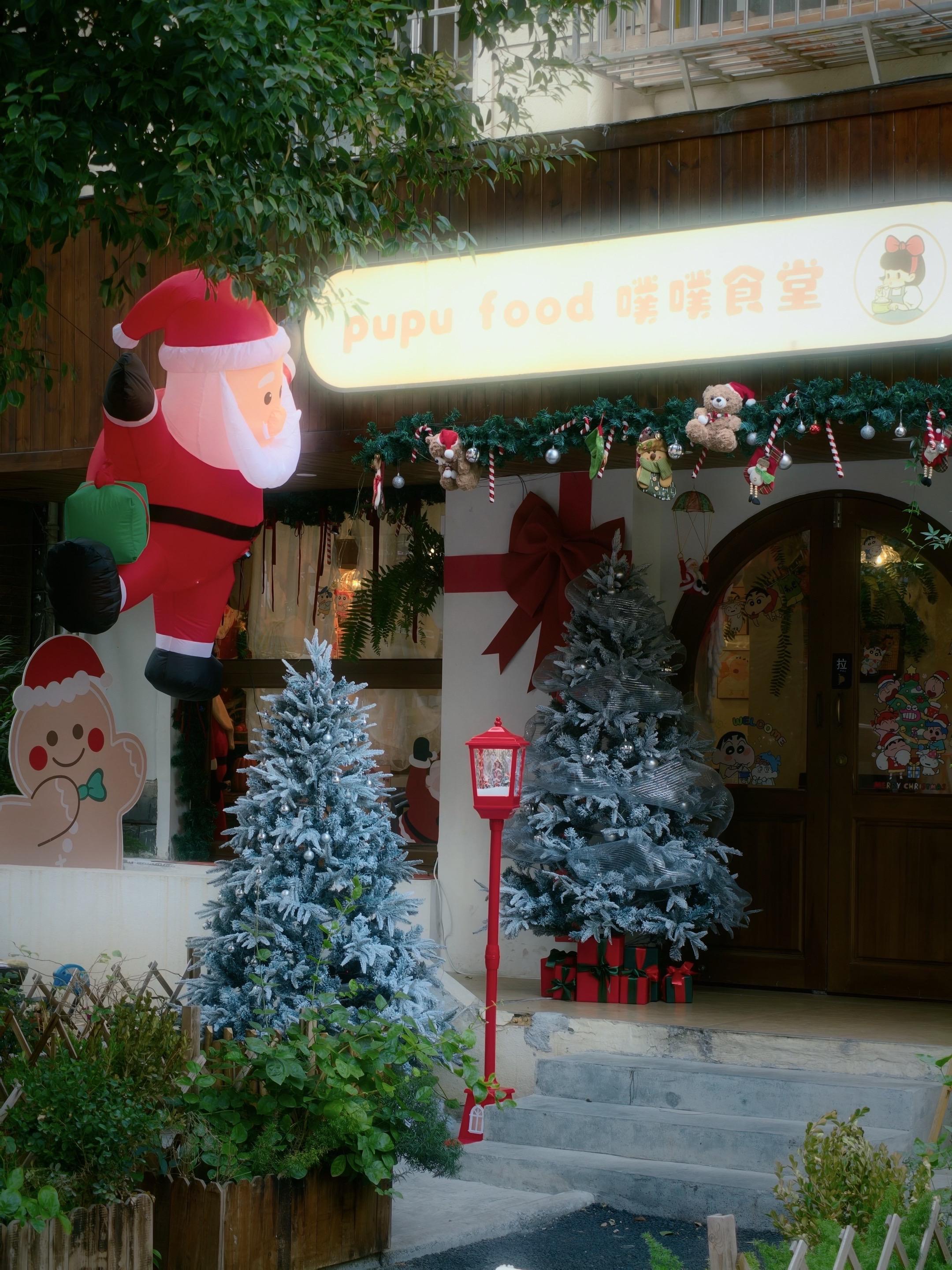 还有街角咖啡店☕️ 直接被门口的充气🎅🏻萌晕!红帽子白胡子配上圆滚滚的肚子 路过的小朋友都忍不住