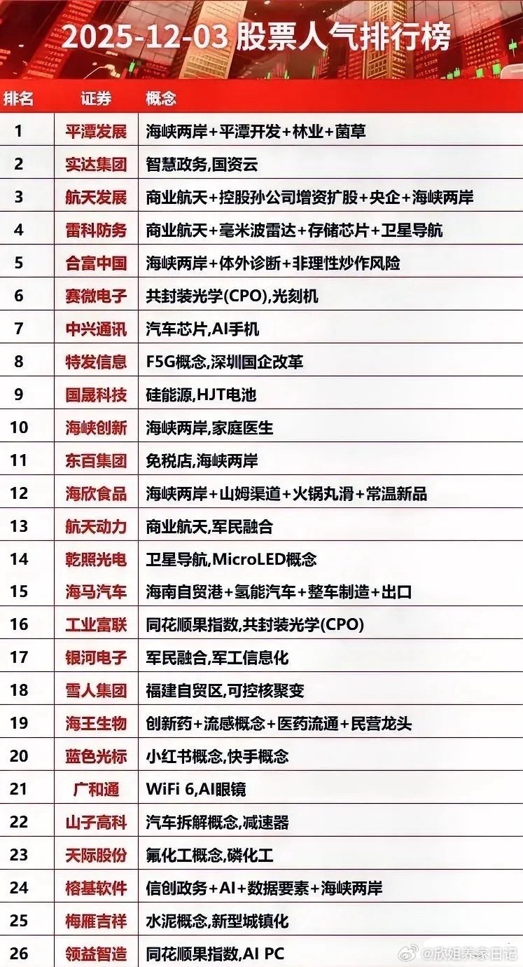 12月3日热门人气股