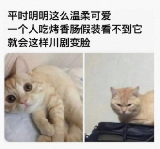 平时明明这么温柔可爱,一个人吃烤香肠假装看不到它,就会这样川剧变脸