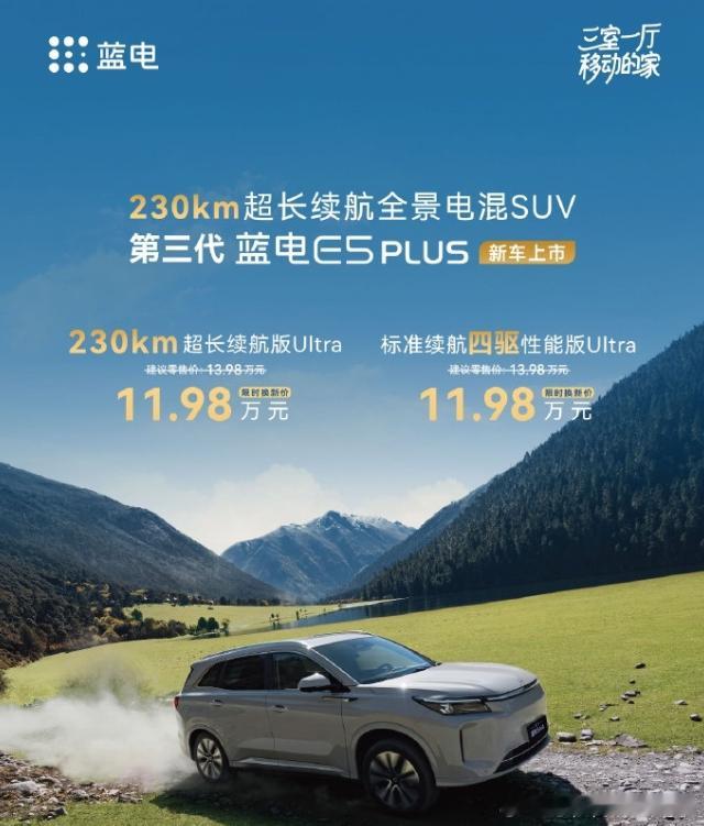 自带热水器、可装电磁炉的汽车,蓝电E5 Plus限时售价11.98万,并且新上的两个版本,两驱和四驱价格是一样的,只是纯电续航不一样。这台车最有意思的是,它能花钱选装场景包,在中间扶手箱里面装了一台即时热水器,一瓶水放上去立马就能出热水,在后备箱装个电磁炉桌,可以用来做饭,另一个选装的舒享包可以加投影、大床,这还真是把家搬上车了10-15万的插混SUV竞争激烈,所以它也就不去跟别人比配置,不如另辟蹊径去做生态件。虽然两个版本价格一样,但三电配置差异上,两驱版是160kW单电机+35.95kWh电池,CLTC纯电续航230km;四驱版是160kW+110kW双电机+25kWh电池,CLTC纯电续航155km。这是真有厨房+卧室了新能源汽车汽场全开