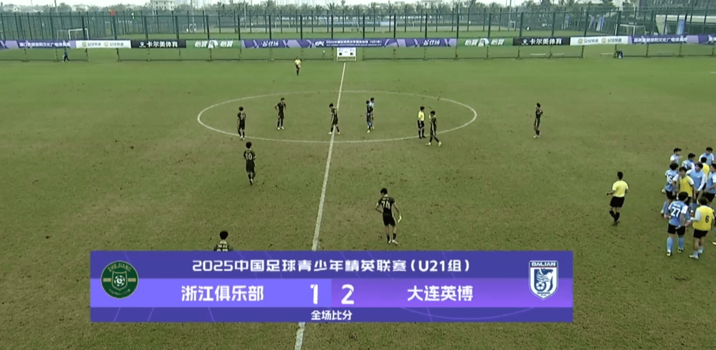 第15分钟,浙江球员田嘉豪右路似传似射吊入球门远角。第20分钟,浙江队球员后场出球失误遭抢断,朱鹏宇单刀面对霍深坪推射破门。第88分钟,大连英博U21前场定位球机会,闫奕涵的射门击中人墙折射入网,最终大连英博U21完成逆转。