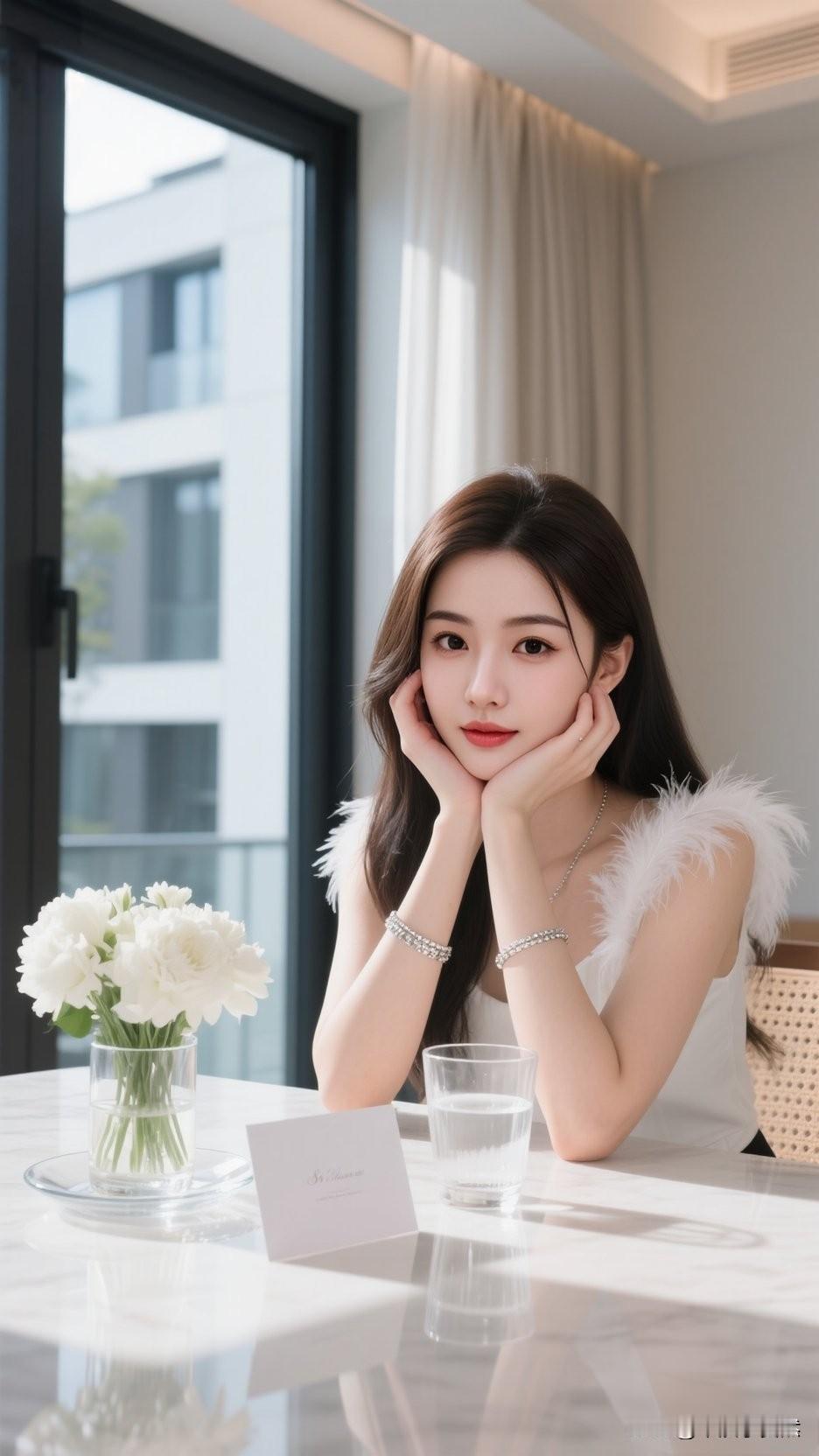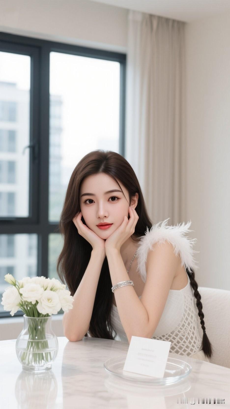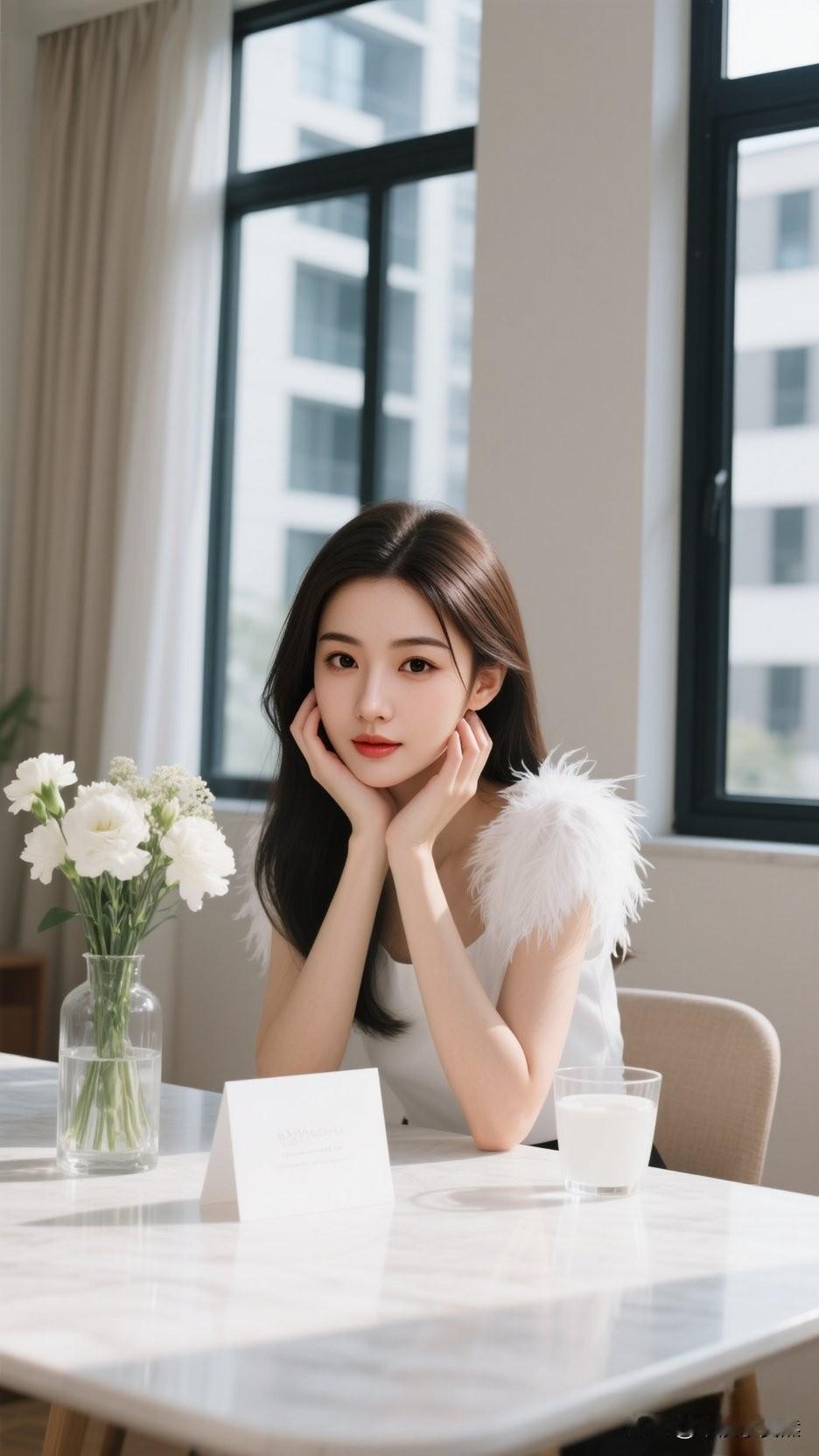 一袭白衣在身,长发飘飘的清纯甜美写真,在窗明几净的背景下,美少女的纯真模样让人眼