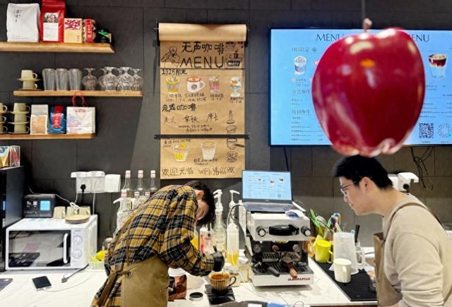 每天一早到店,周浩然和同事都会先把吧台擦拭得一尘不染,仔细检查咖啡豆的新鲜度,再用温水反复调试咖啡机。为方便他们工作,店里特意准备了图文并茂的点单手册,顾客只需指着手册上的图案就能完成点单。一来二去,不少老顾客还学会了用简单的手势和他们打招呼、表达赞许,这份无需言语的默契格外动人。
