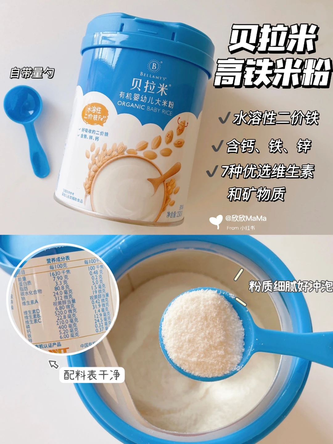 那要选哪款米粉呢?给大家参考下,我给欣欣用的是贝拉米有机高铁米粉,原料选用有机黑土地的黄金大米,没有工业污染,更天然营养。而且品牌19年来只做有机,在澳洲很受欢迎,值得信赖~