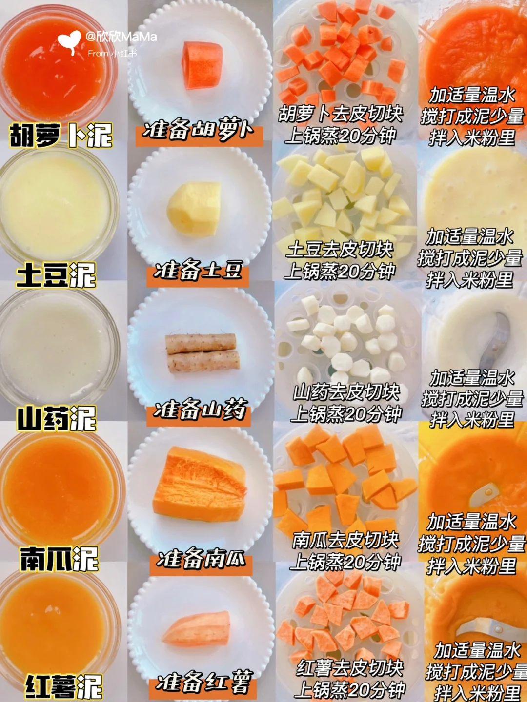 🔻今天欣欣妈就跟大家分享米粉正确的冲泡方法以及常见的30种辅食泥做法,一定要收藏起来呀!