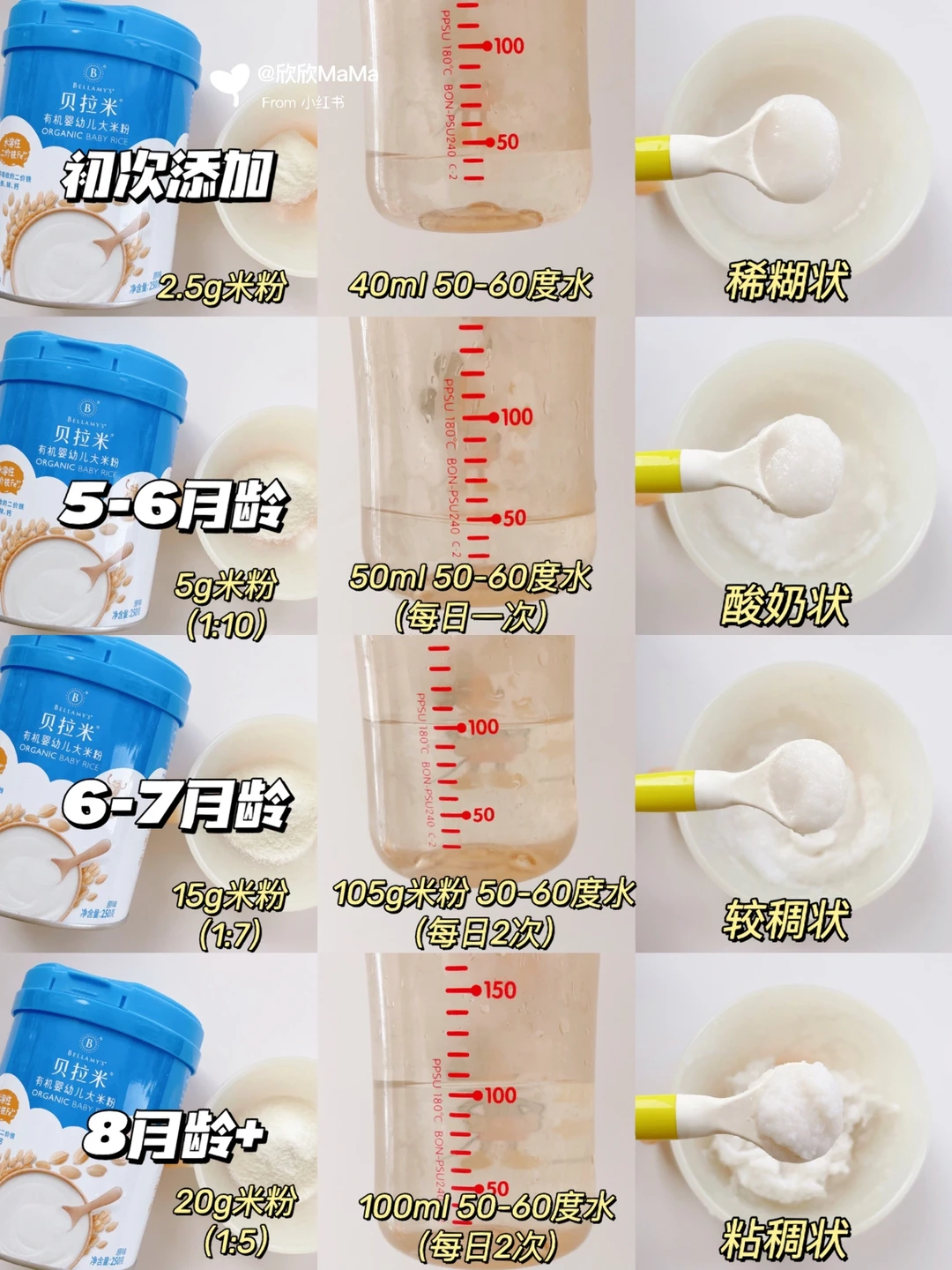 宝宝适应高铁米粉一周后,就可以在贝拉米有机米粉里添加蔬菜泥啦.从根茎泥开始,辅食2周后就可以添加果泥,每添加一种食材2-3天排敏期,如辅食泥第1天1-2勺,第2天2-3勺逐渐增加拌入米粉里
