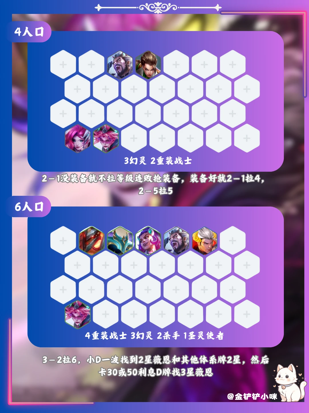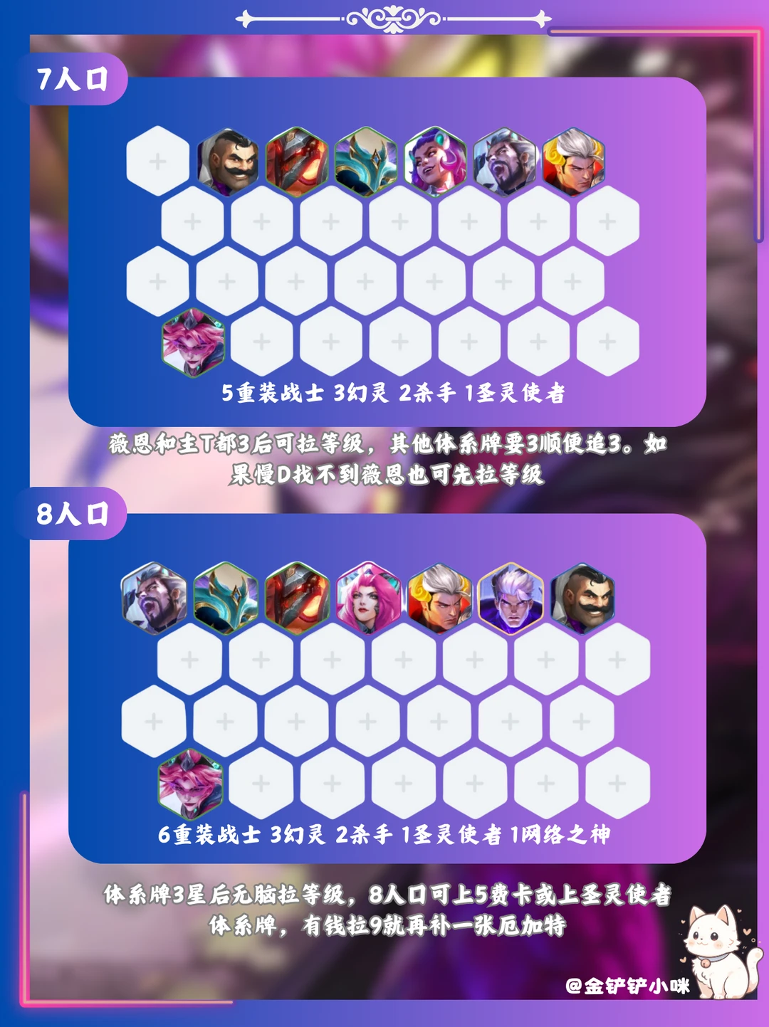 🌟s14赛博赛博城市重装薇恩!仅当版本适用! 🌟建议前期爆薇恩或弓爆的多再冲! 🌟海克斯推荐2战力1经济(D牌)海克斯可按推荐拿! 🀄️——————————运营思路—————————— 2️⃣阶段2-1没装备连败抢装备,有装备2-1拉4,2-5拉5 3️⃣阶段3-2拉6,大D一波找到2星薇恩和体系牌,然后卡30或50利息慢D3星薇恩 4️⃣阶段薇恩和体系牌3星后,无脑拉等级按图上体系牌即可
