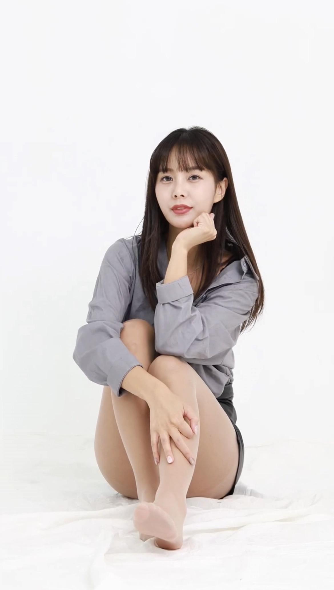 温柔甜美的坐姿,灰色衬衫搭配黑色短裤,轻松自然,散发着青春活力!🌟✨