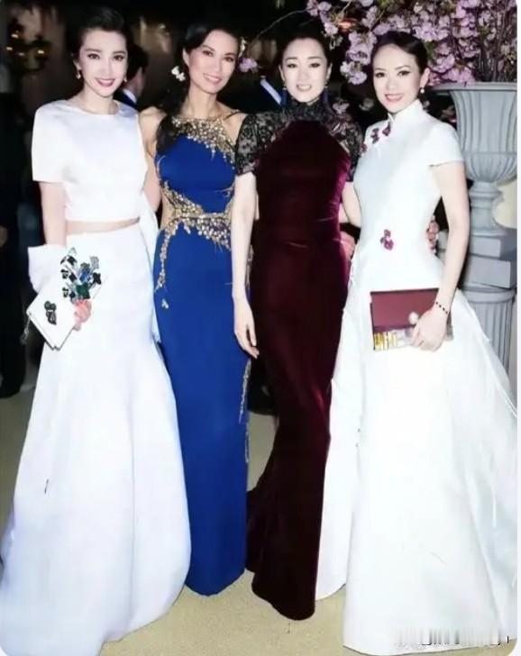 章子怡、巩俐、邓文迪、李冰冰四位大美女站一块,跟四朵开的最艳的花挤一堆儿似的,亮的人直迷眼! 个子差不多高,身材个个顺溜得像画里的,长得像亲姐妹(邓文迪除外),可各有各的气场。 有的飒,有的稳,有的灵,有的暖。气场跟开了小太阳似的,自个就把光“轰”开了,旁边人都成陪衬,就她四个亮的扎眼。 这哪是美女聚会,分明是仙女组团来闪人的!