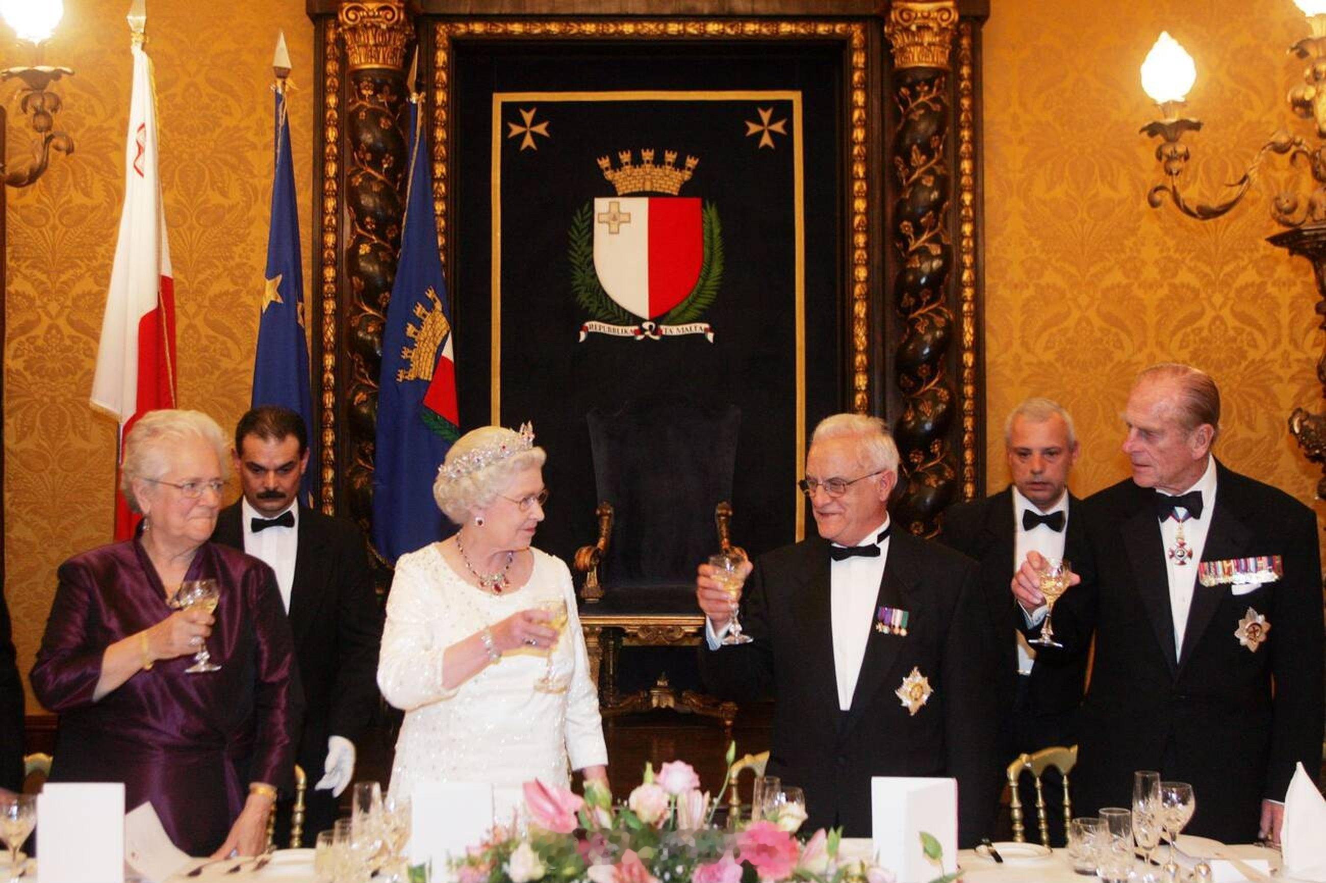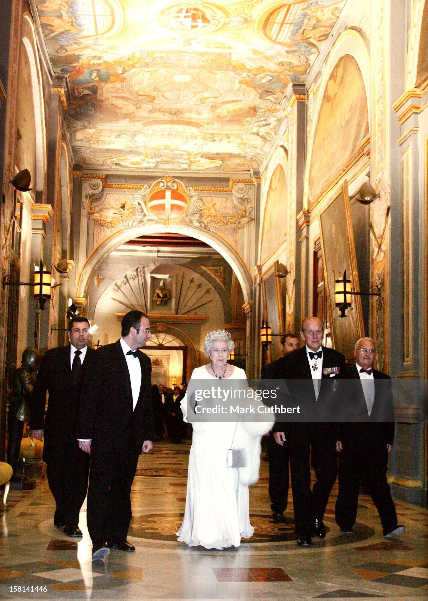 英国王室 2005年11月23日,伊丽莎白二世女王和爱丁堡公爵菲利普亲王在马耳他出席晚宴🇲🇹那次是伊丽莎白二世女王自2002年从她妈妈继承以来,【第一次也是唯一一次】佩戴东方王冠,这是阿尔伯特亲王1853年为他妻子维多利亚女皇设计的王冠。