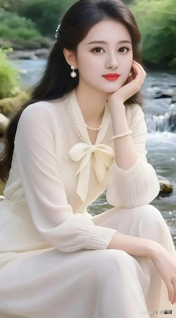 溪光裹着柔纱,白裙沾了草木的温软。珍珠与蝴蝶结轻落肩头,连风掠过发梢,都漫着清甜的静。 温柔高贵的女性 温柔气质少女风