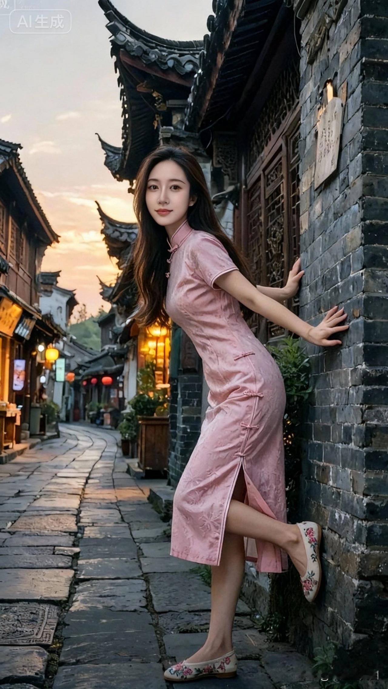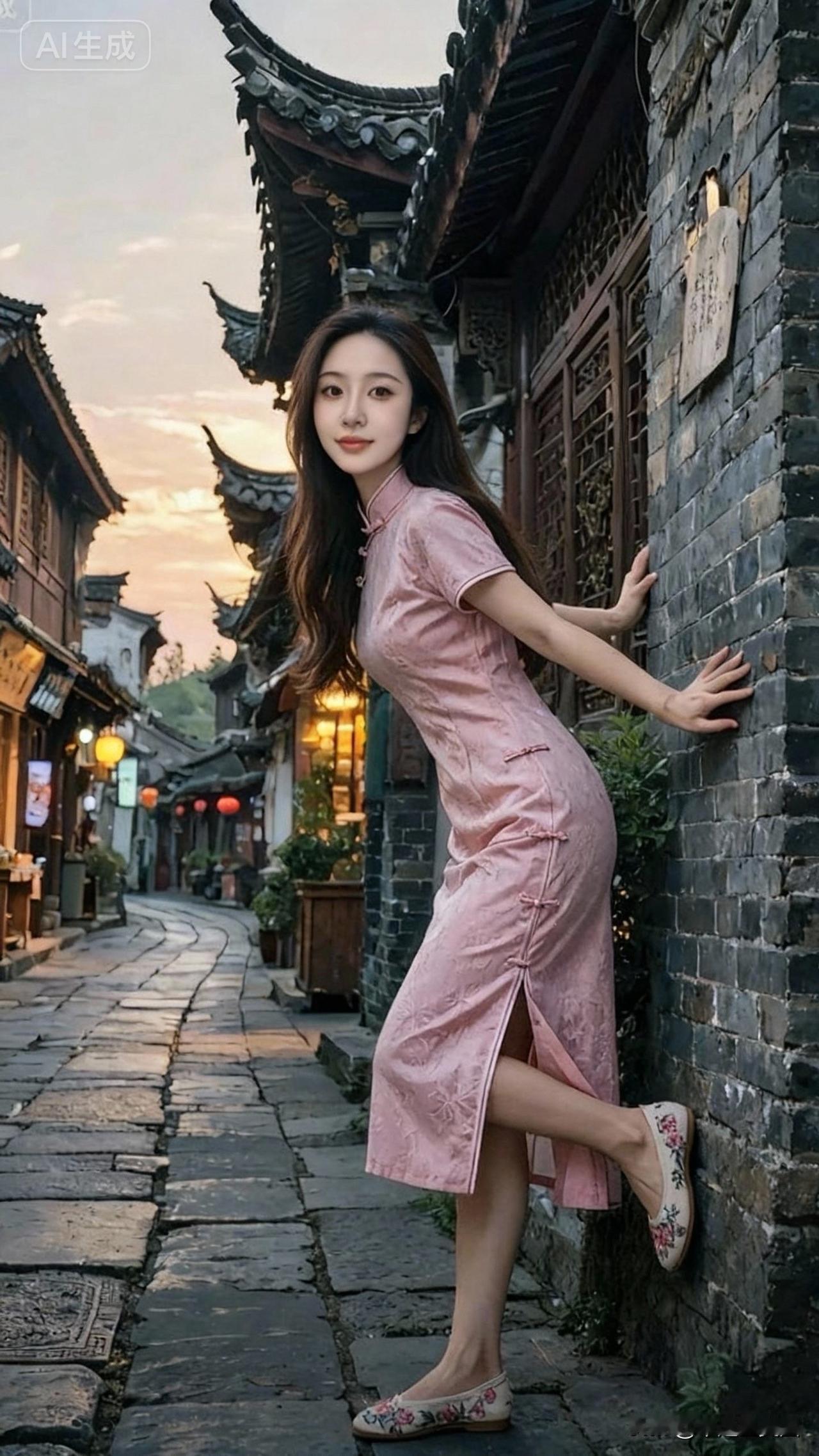 粉色的旗袍,古韵的街道,优雅的女子,美不胜收!