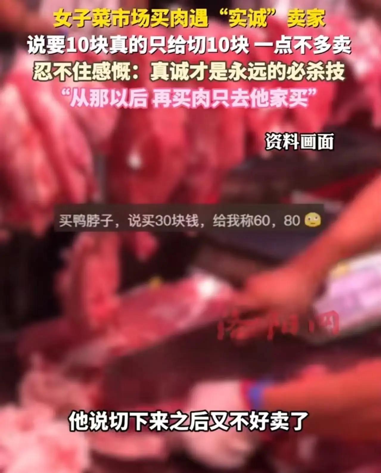 湖南一女子去买肉,明明说好了买10块,结果卖肉大妈却“豪爽”地给她切了18块、20块。女子脸皮薄,不好意思拒绝,告诉她“多切的卖不出去要赔本”,她干脆买了。可直到有一天,她换了家卖肉档口,忍不住感叹:“真诚才是永远的必杀技!”新闻 湖南 这件事看似日常小事,却透出浓浓的人情味和生意经。卖肉的大妈“多切块”的背后,是百姓间朴实无华的算计:一方面想赚点小钱,另一方面又怕浪费了肉。但也正是这种“多给”的态度,反而让买肉的人成了无奈的“接盘侠”。这不仅让消费者心生疲惫,也让买卖关系变得复杂起来。 反观那家新档口,老板只切“应有”的份额,遵守“说多少给多少”的原则。客户买肉安心,心里头有底。哪怕零碎一点、利润略低一点,却赢得了“真诚”的口碑,让客户从此愿意回头。这,恰恰是商业长久发展的根本。 人们常说:“真金不怕火炼,诚信最值钱。”在当下社会,高质量的服务不只是产品的优劣,更是人与人之间最珍贵的桥梁。买肉的故事,就是生活给我们上的一课:在“套路”泛滥的时代,做生意也好,做人也罢,真诚就是打开信任大门的万能钥匙。 你有没有也遇到过类似“多切块”的小尴尬?或者,你更喜欢那种“不多、不少,刚刚好”的买卖关系?欢迎留言吐槽,让我们一起聊聊那些生活里的“真诚小故事”!