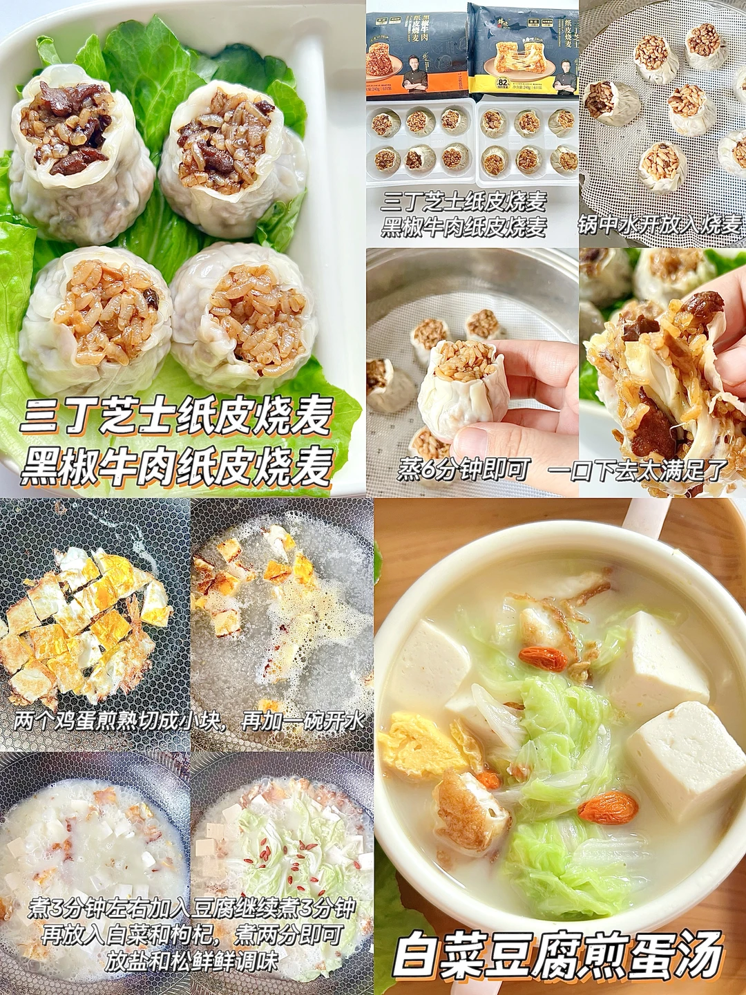 DAY6:三丁芝士纸皮烧麦➕黑椒牛肉纸皮烧麦➕白菜豆腐煎蛋汤