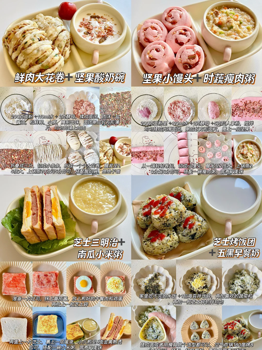 开学季来咯~ 麻麻们又到了每天发愁给小朋友安排啥早餐的时候啦~毕竟一日三餐,早餐尤为重要,营养美味的早点可以让宝宝胃口大开,元气满满,有活动的能量 趁着有时间,整理好了12款我家小朋友爱吃的早餐做法 每天好吃不重样,妈妈们安排起来吧~