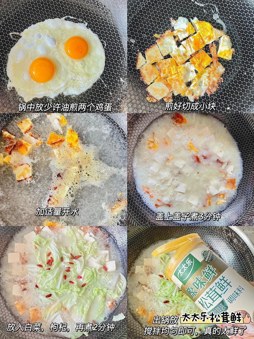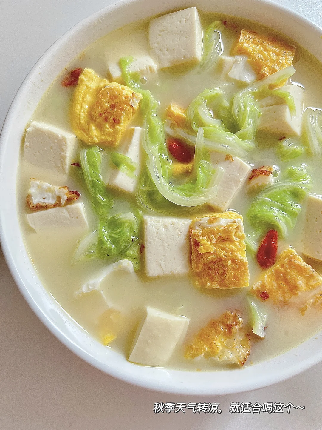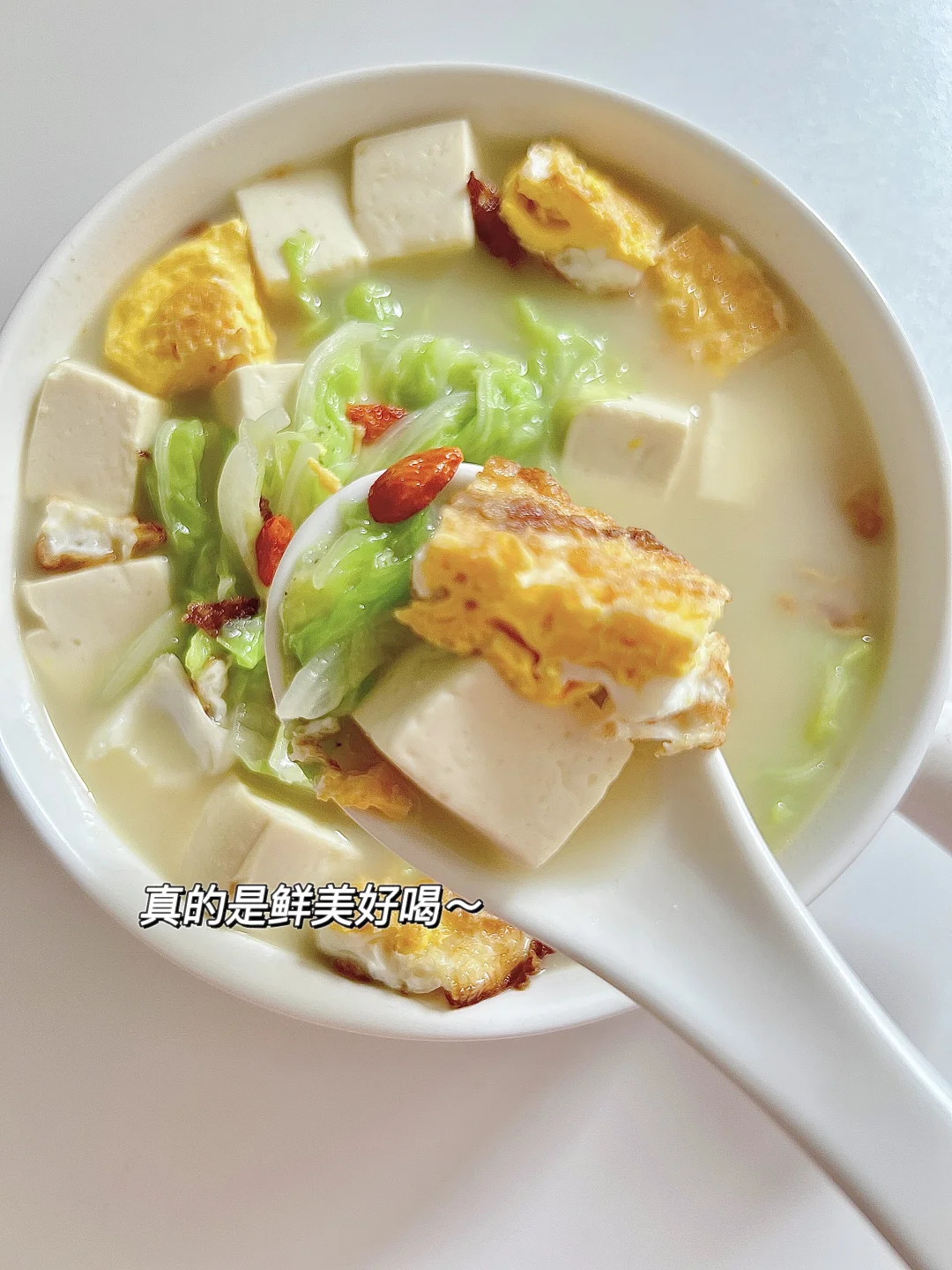 秋季天气比较干,就是要喝一些汤汤水水啦~赶紧来上一碗热乎乎的白菜煎蛋豆腐汤,汤鲜味美,实在太满足啦!汤汁鲜美,搭配上吸饱汤汁的煎蛋和嫩滑的豆腐,还有清甜的白菜!真的鲜哦!我家每周都要喝这个汤,简单又好做留快来安排吧!