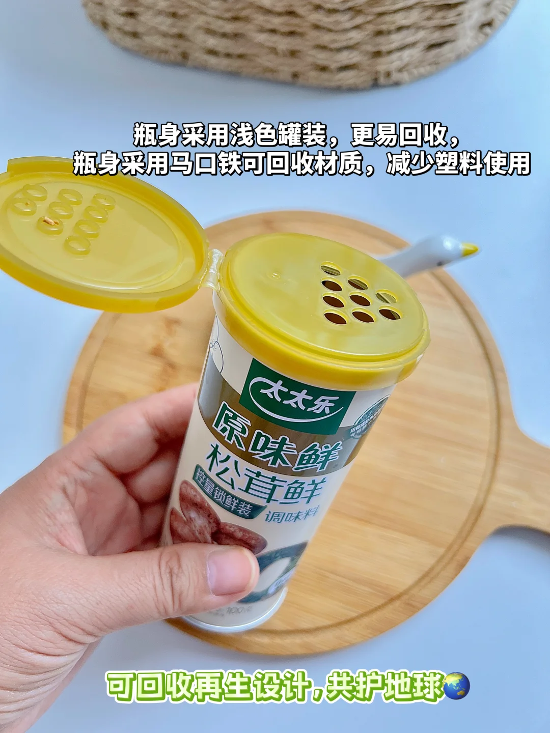 瓶身也使用了可回收再生设计,让我们一起共护地球🌏,不愧为《松茸鲜调味料团体标准》立项牵头人,太太乐松茸鲜规范了调味料市场标准,定义了品牌标杆!