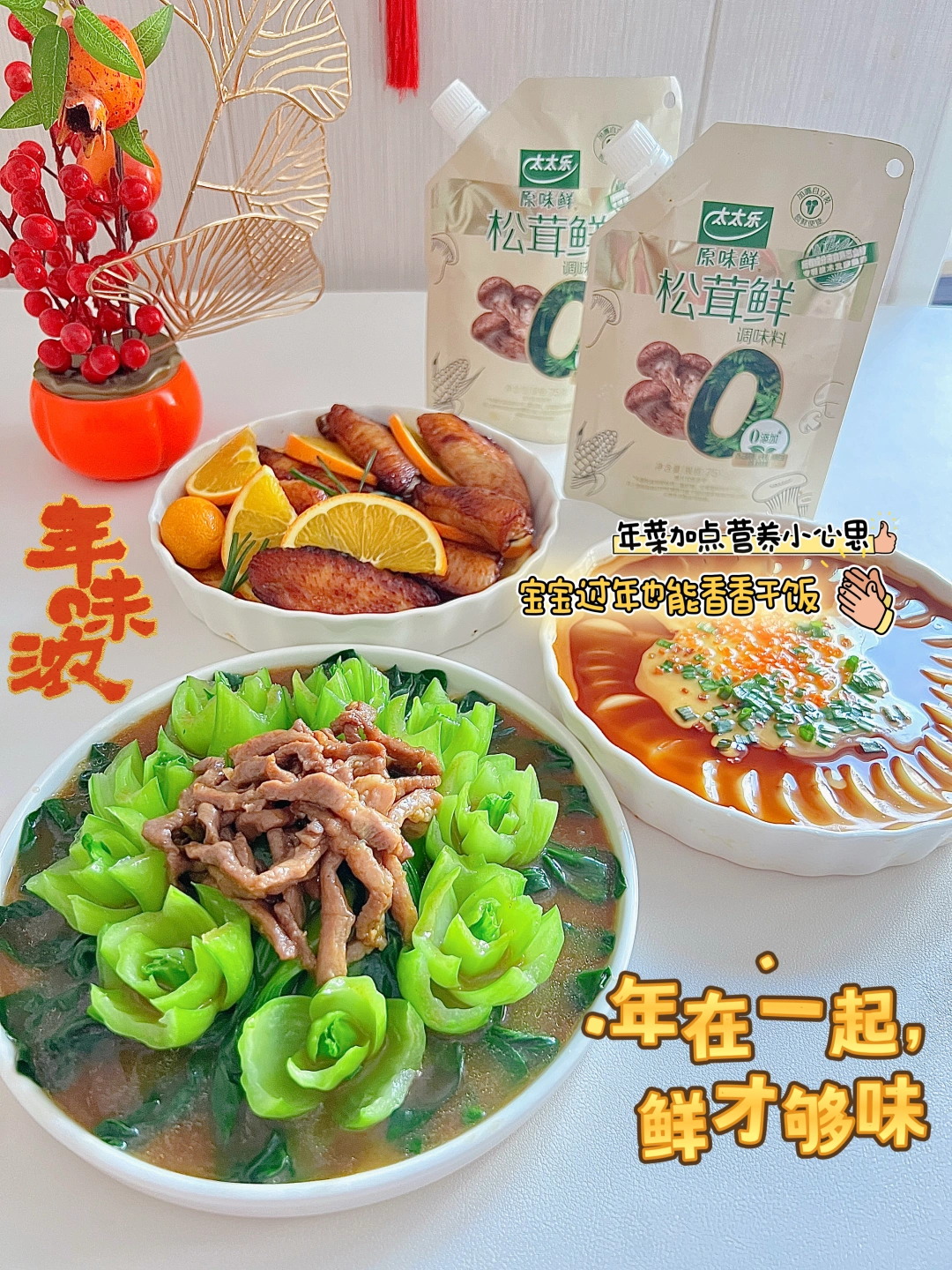 🔅今年专门给宝宝准备年夜饭可是耗费了我不少心思,不仅要样式好看,营养丰富,味道上也得是她喜欢的。所以我特别添加了一点鲜味小心思,加了她最喜欢的太太乐原味鲜松茸鲜来调味。