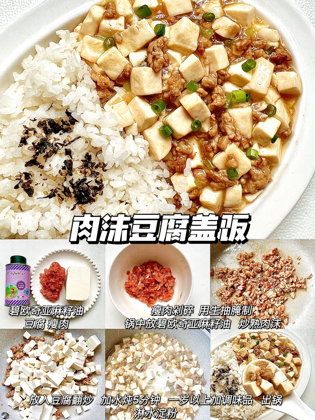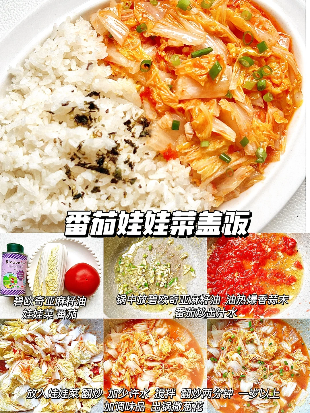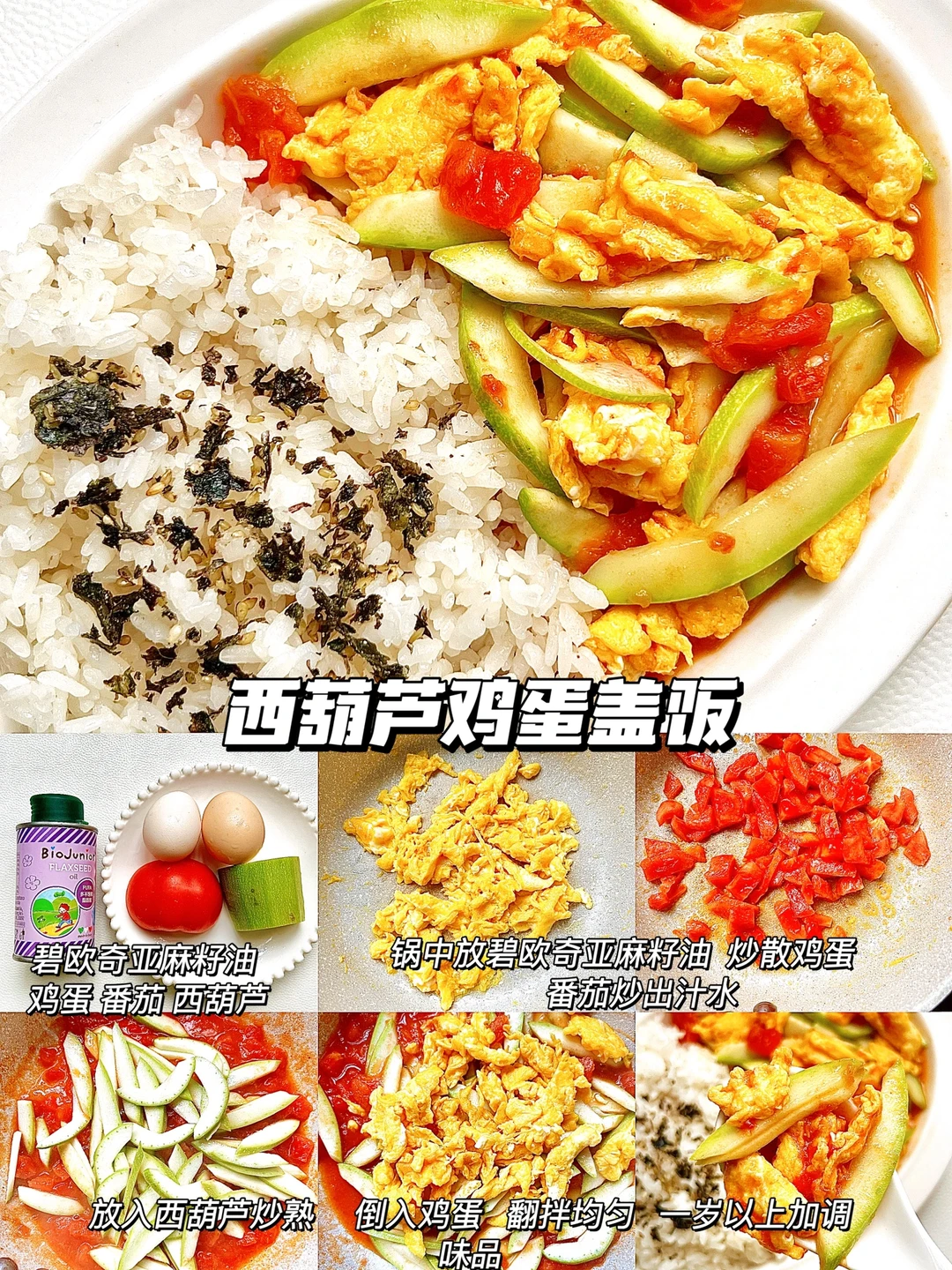 ✅这次做盖饭,我用的是碧欧奇亚麻籽油,这款油是宝宝专用热炒油,烟点高达231°,多不饱和脂肪酸含量高,亚麻酸含量 55%,是牛油果的90倍,亚麻酸可以在人体内转化为 DHA,而且油脂纯净,没有苦味,宝宝非常容易接受,宝妈们可以放心选择哦~