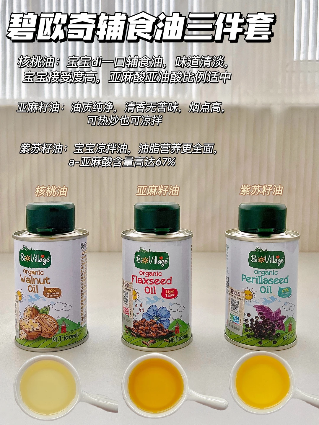 🧚🏻♀️宝宝的辅食油我家宝宝一直选吃的是碧欧奇的辅食油三件套,包括核桃油、亚麻籽油、紫苏籽油,都是清香无苦味,宝宝非常容易接受😊
