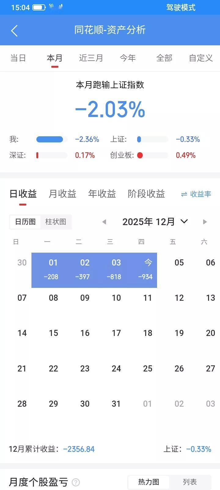 2025.12.04,今天上证指数又是没有跌,但是我持有15只股票,只有1只勉强