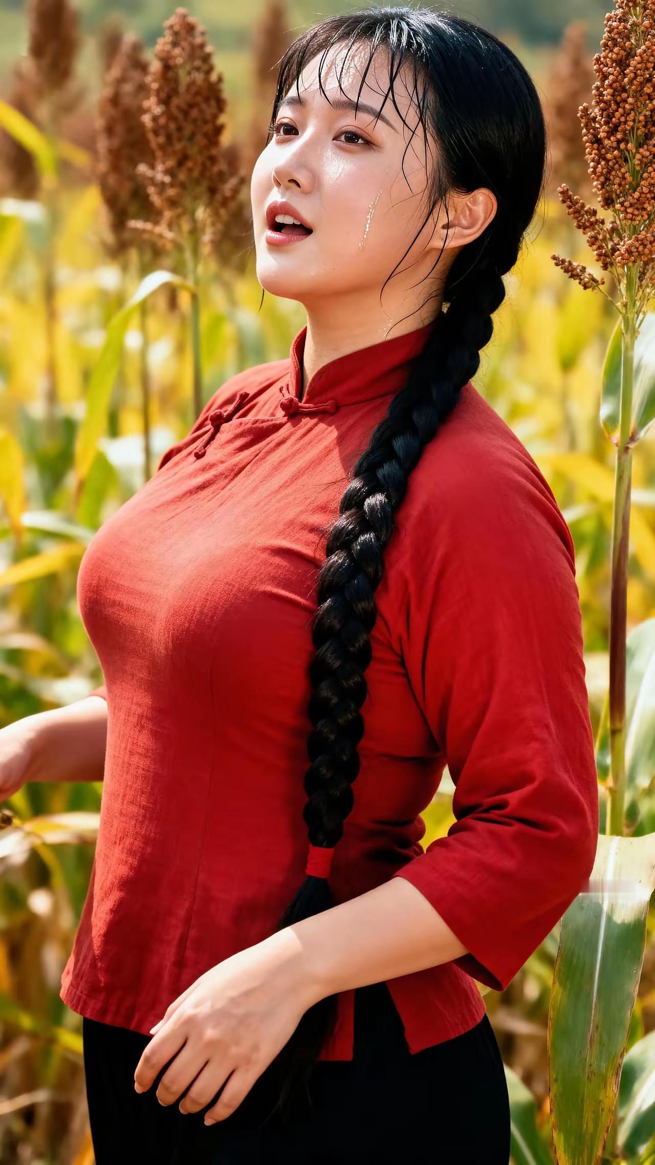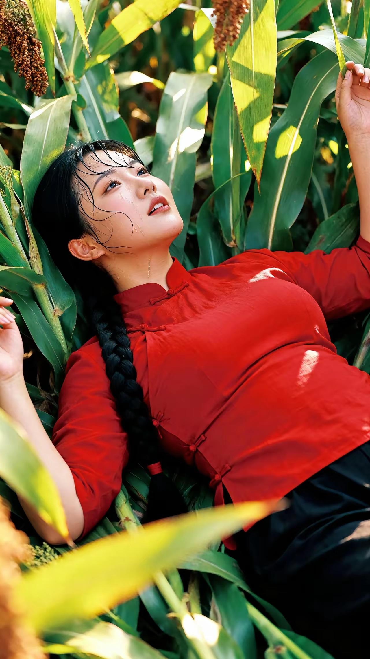 田园劳作中的美丽姑娘,夕阳下的农忙时光。