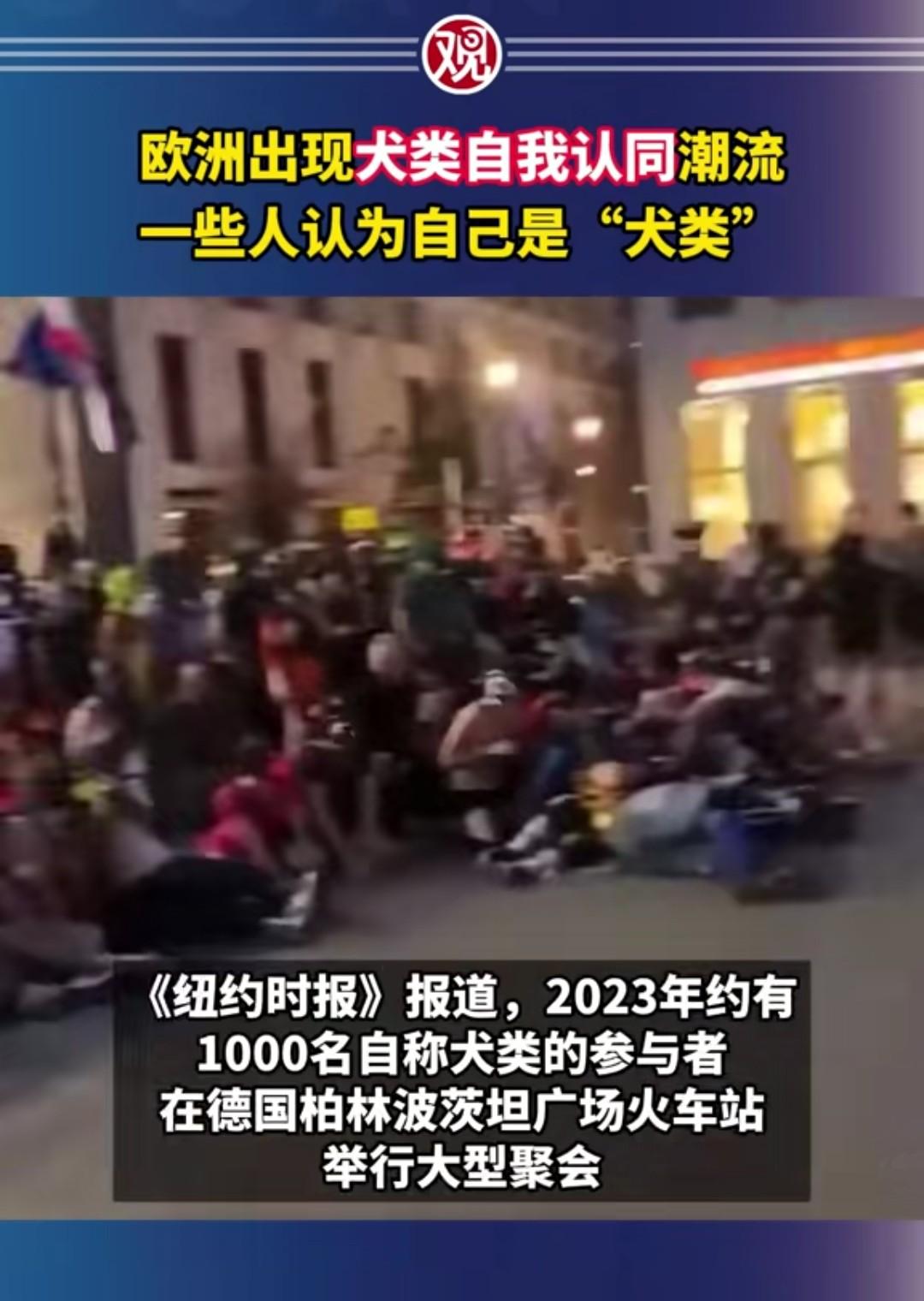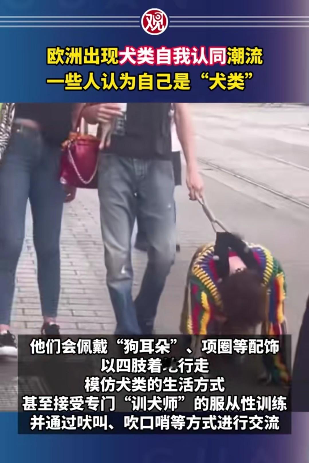 我的天,希望这种反人类反智商的潮流不要进入中国。 有俄罗斯媒体报道,近年来,有一股“犬类自我认同”潮流在欧洲流行。 这些人他们认为自己是犬类,接受训犬师的训练,他们会佩戴狗耳朵、狗项圈等道具,四肢着地爬行,模仿犬类生活方式。甚至还有这个圈子的比赛。 这还是我认识的世界吗?欧美怎么总是有这种奇奇怪怪的潮流出来,太反人类了! 冬日生活打卡季 (信息来源:观察者网)
