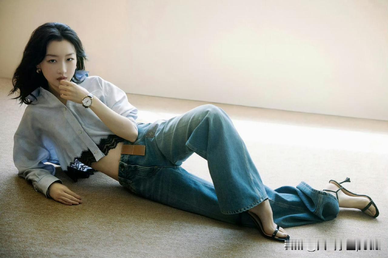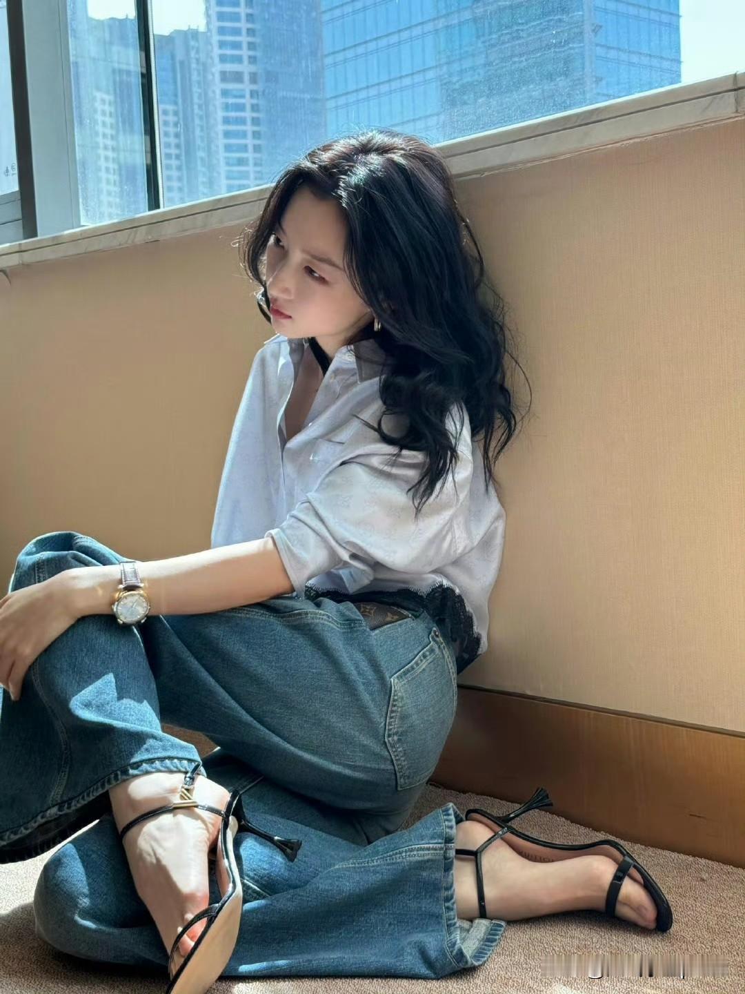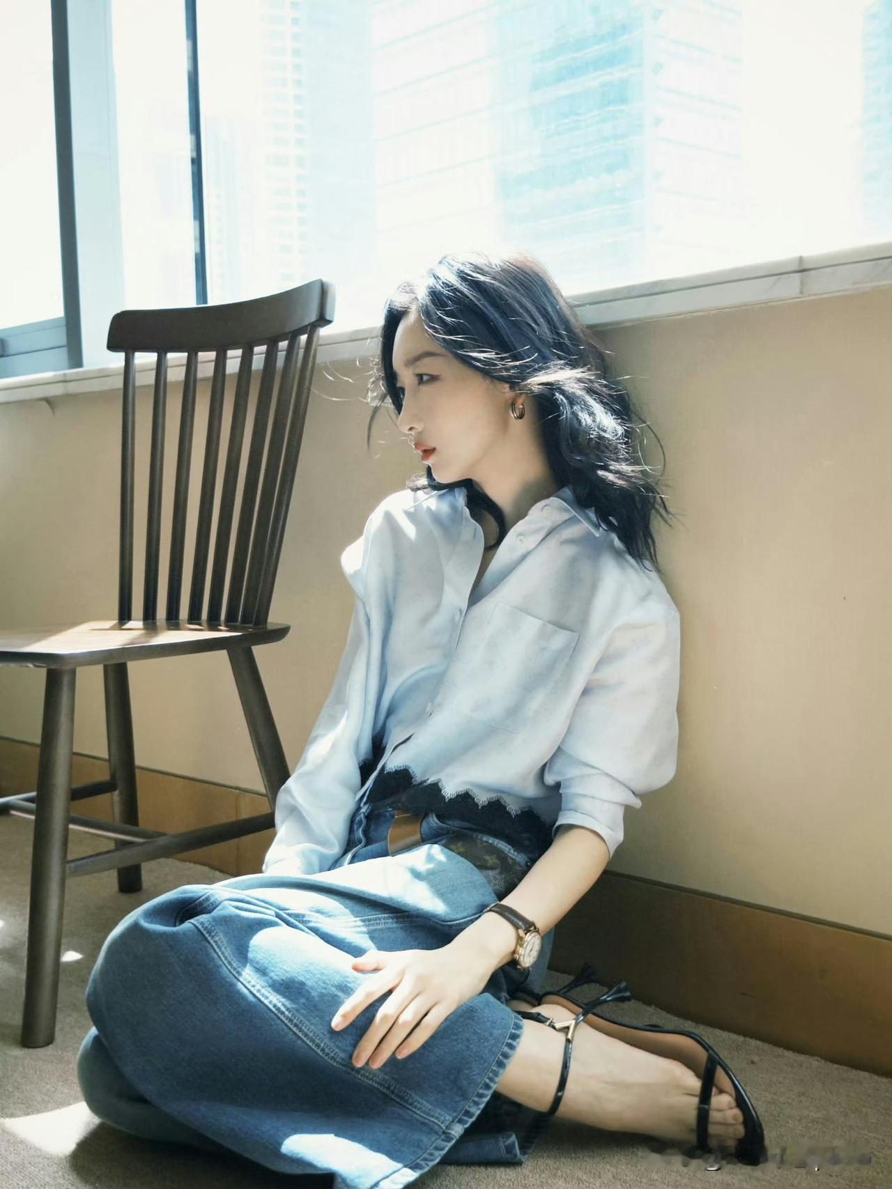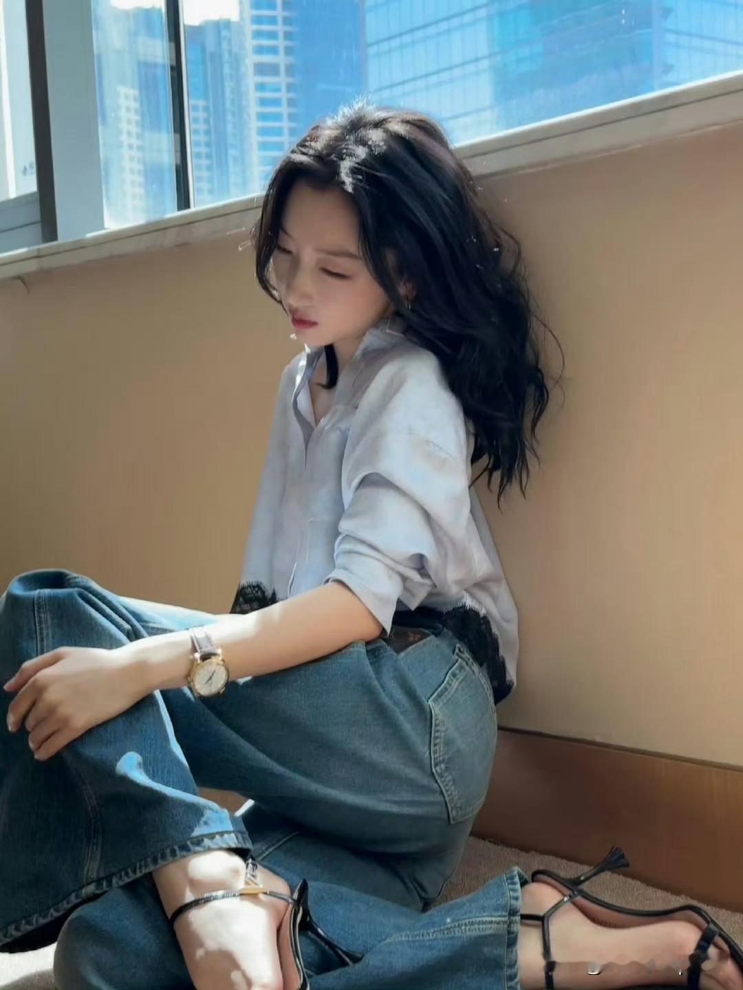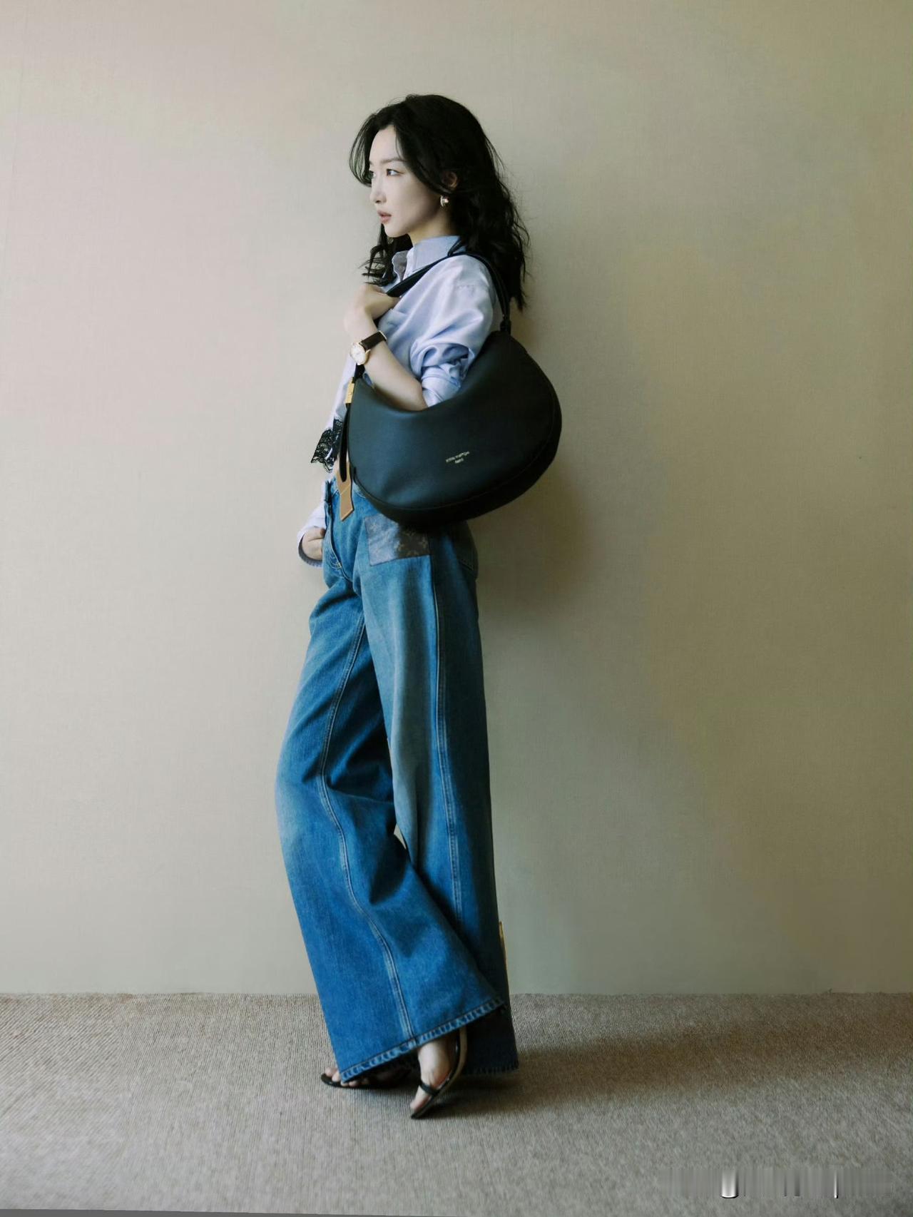 周冬雨这身也太会搭了吧! 蓝色衬衫配牛仔裤清爽又高级,同色系穿出满满质感! 一字带细高跟一踩,整个人比例拉满,气质瞬间拔高~ 中长波浪卷发配金色耳饰,慵懒里透着精致,随便一站都像画报。 她最近真是越来越美了,那种自信又松弛的氛围感绝了!