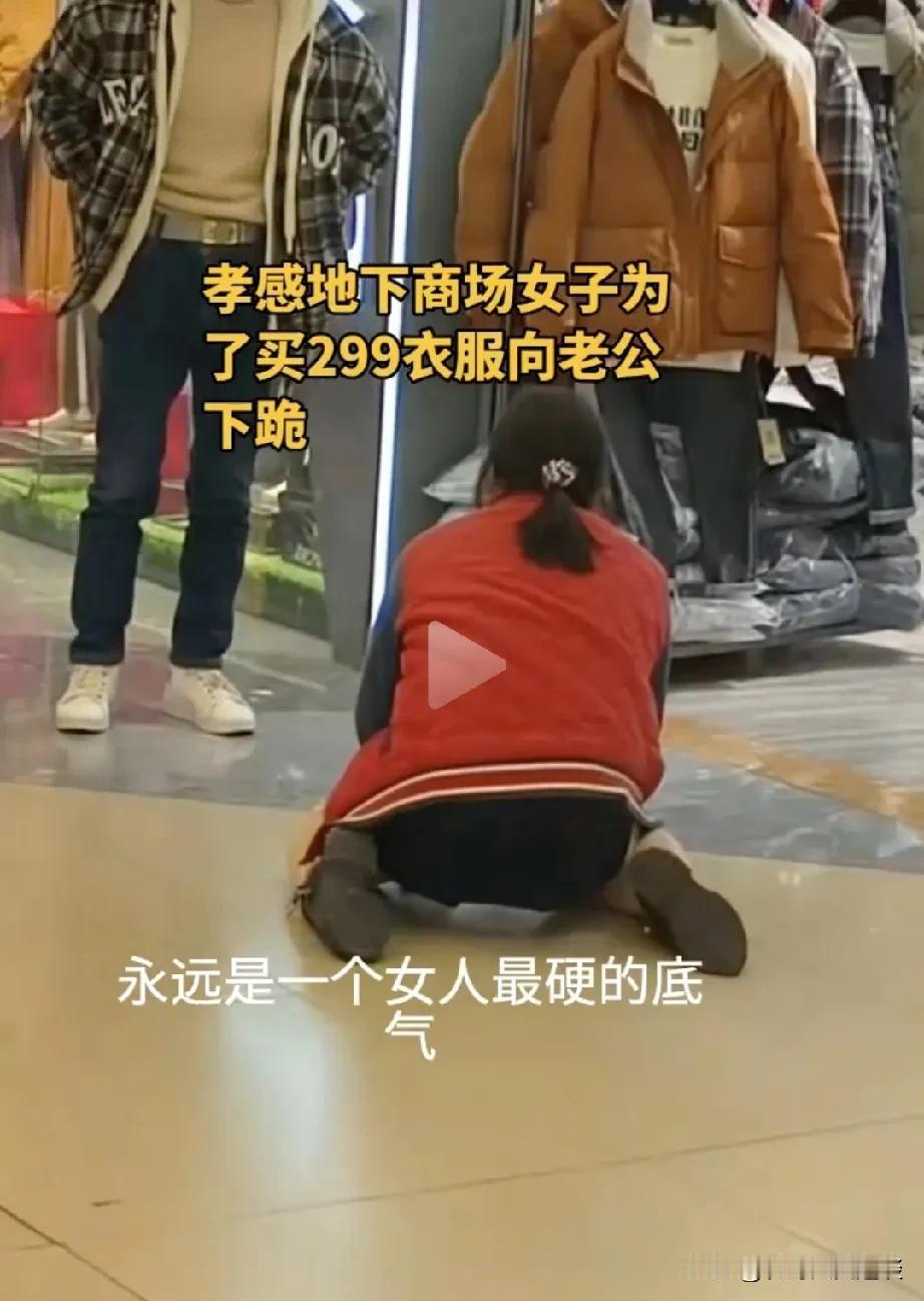 这个女人活得太卑微了。女子和丈夫一起逛商场,她看中了一个羽绒服才299块钱,他想买一套,她老公不给她买。因为她老公在外上班挣钱,女子在家带孩子,接送上学,她花的钱都得伸手向她老公要,她老公给一点她都花一点,所以说现在买衣服,她还得征求她老公的同意,因为她老公要付钱,这个时候,她老公却不同意她买这一羽绒服。 女子很无奈的跪在地上,叫她老公给她买一套。不得不说,这个女子,日子过得太卑微了,所以说经济独立对女子来说是很重要的。 网友说,这样家庭,女人离婚算了。