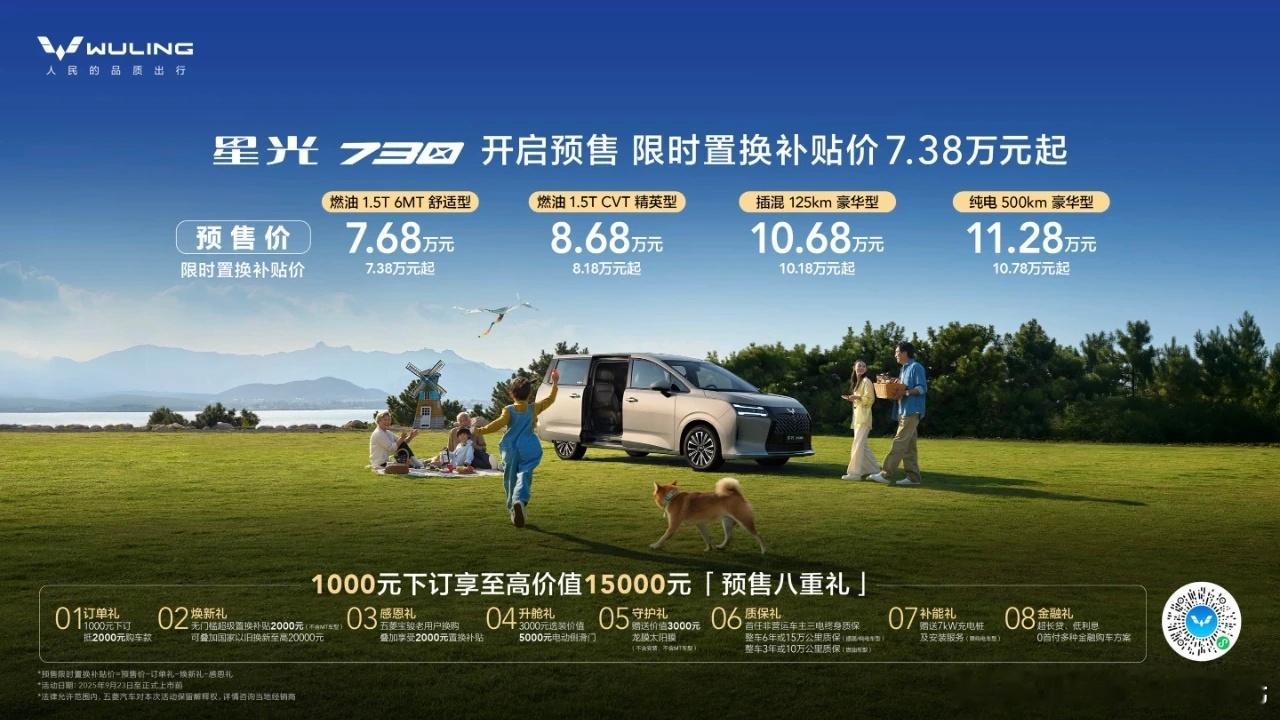 五菱全新大型mpv,星光730上市7.3万起步 顶配插混10.38万,纯电10.98万不出意外,上市比预售价图2便宜了3000元但加上置换补贴七七八八,要是您是五菱车主的话还能再便宜2000起码是5000+优惠,吓人 友商能顶得住吗,一个正经的新能源mpv只卖十万级哦,友商有这个价位嘛?期待配置更高的版本的出现,32TL2和侧气帘,座椅通风、电尾门加上的话 就无敌了,话说左侧滑门能不能选装自动门啊