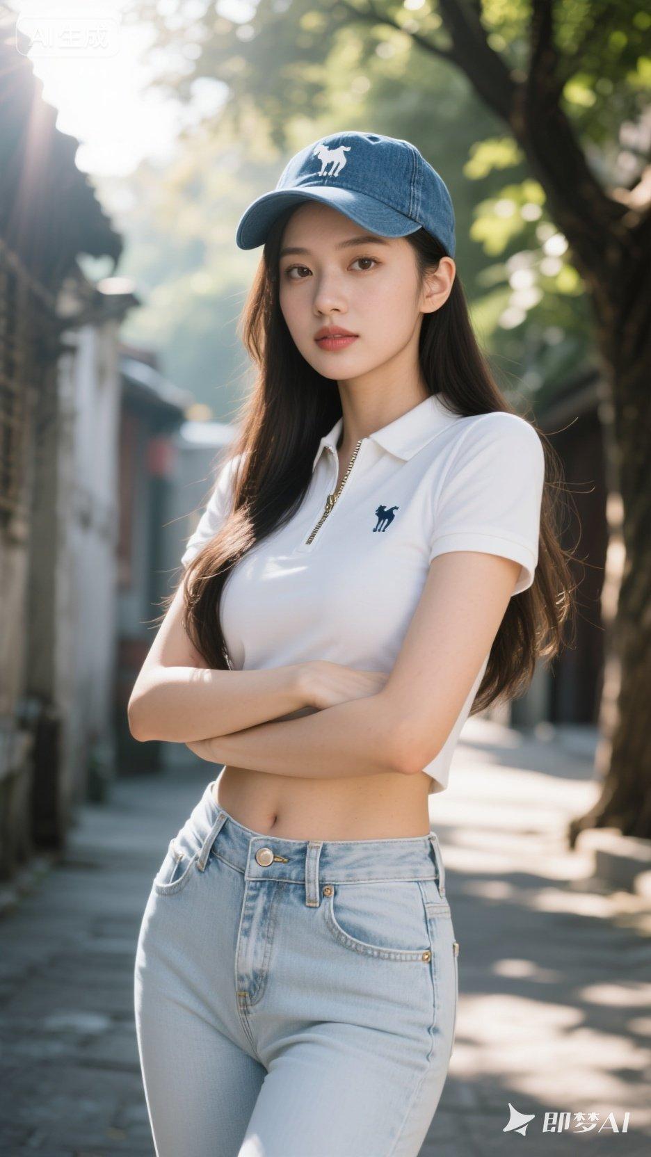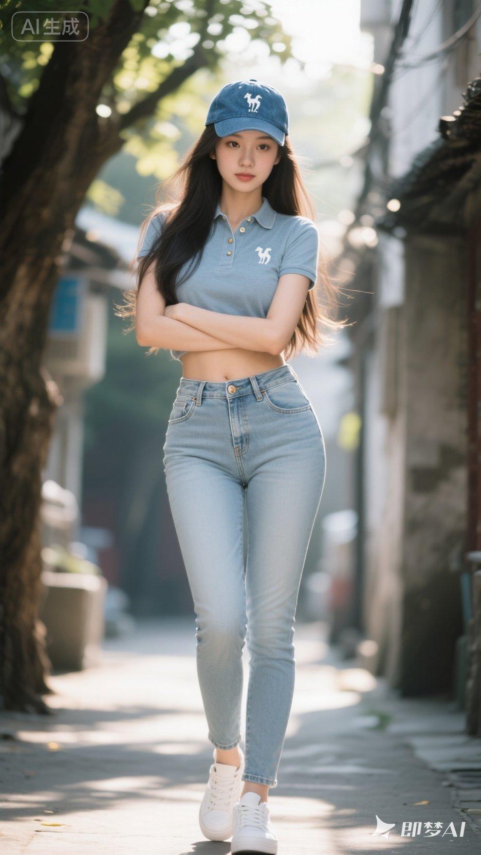 阳光灿烂的午后,老街的树荫下,一位少女青春活力四溢,那时尚的穿搭格外吸睛。 她身着无袖绑带背心,搭配条纹阔腿裤,还戴了顶遮阳帽。无袖的设计让腋下通风顺畅,绑带可自由调节松紧,避免了出汗黏身的窘迫。条纹阔腿裤版型宽松,走路时大腿不会相互摩擦,裤管还能带动空气流通,纵向条纹更拉长了她的身材比例。宽檐遮阳帽刚好挡住了直射的阳光。 她宛如元气少女与绿植相伴的清纯甜美写真中的主角,清新自然,于老街营造出街头漫步的闲适氛围感,成为午后一道靓丽的风景线。