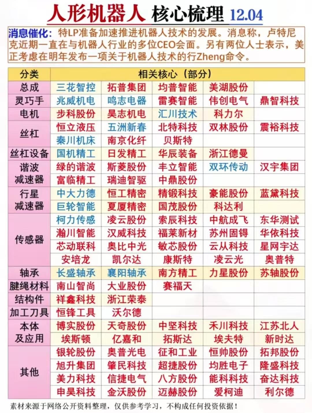 国家队布局机器人概念公司梳理! 2025年12月4日,美政府在推动AI发展后转