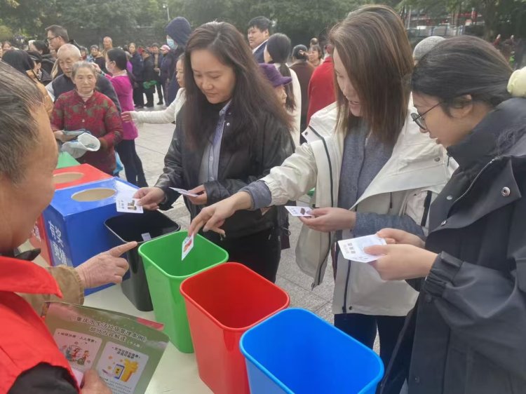 “这个蓝色垃圾桶装可回收物,厨余垃圾要倒进绿色桶里……”近日,一场主题为“垃圾分类从我做起”的宣传活动,在重庆两江新区民心佳园广场热闹开启。金山街道工作人员通过趣味互动、现场答疑、物资发放等形式,让垃圾分类知识走进千家万户,引导居民主动参与垃圾分类实践。