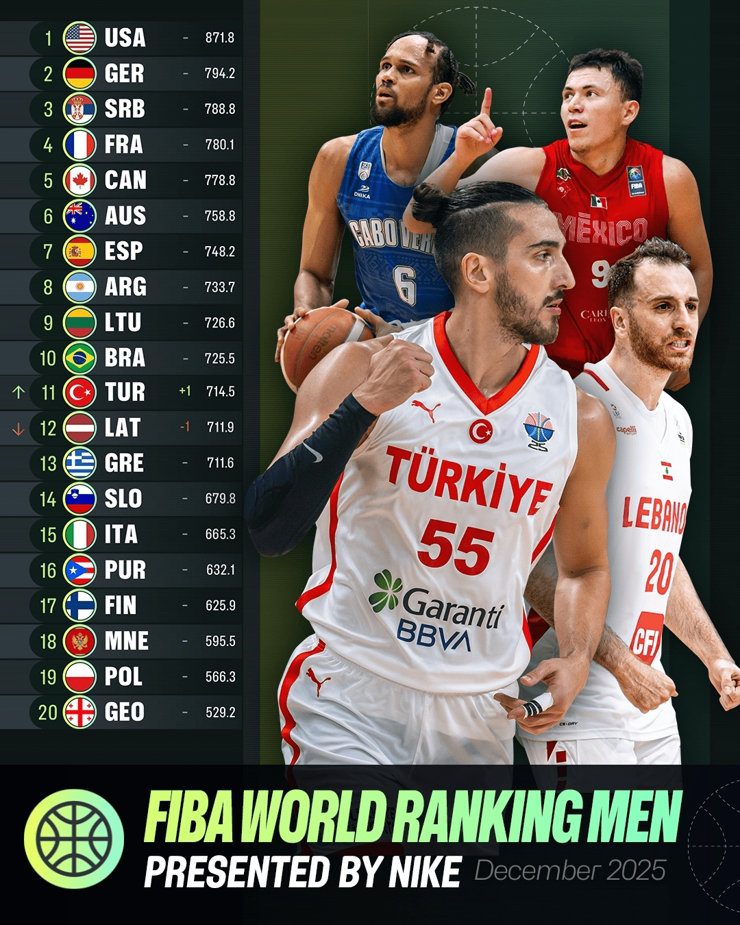 虎扑12月04日讯世界杯男篮预选赛第一个窗口期结束,FIBA官方发布最新世界男篮实力榜排名。