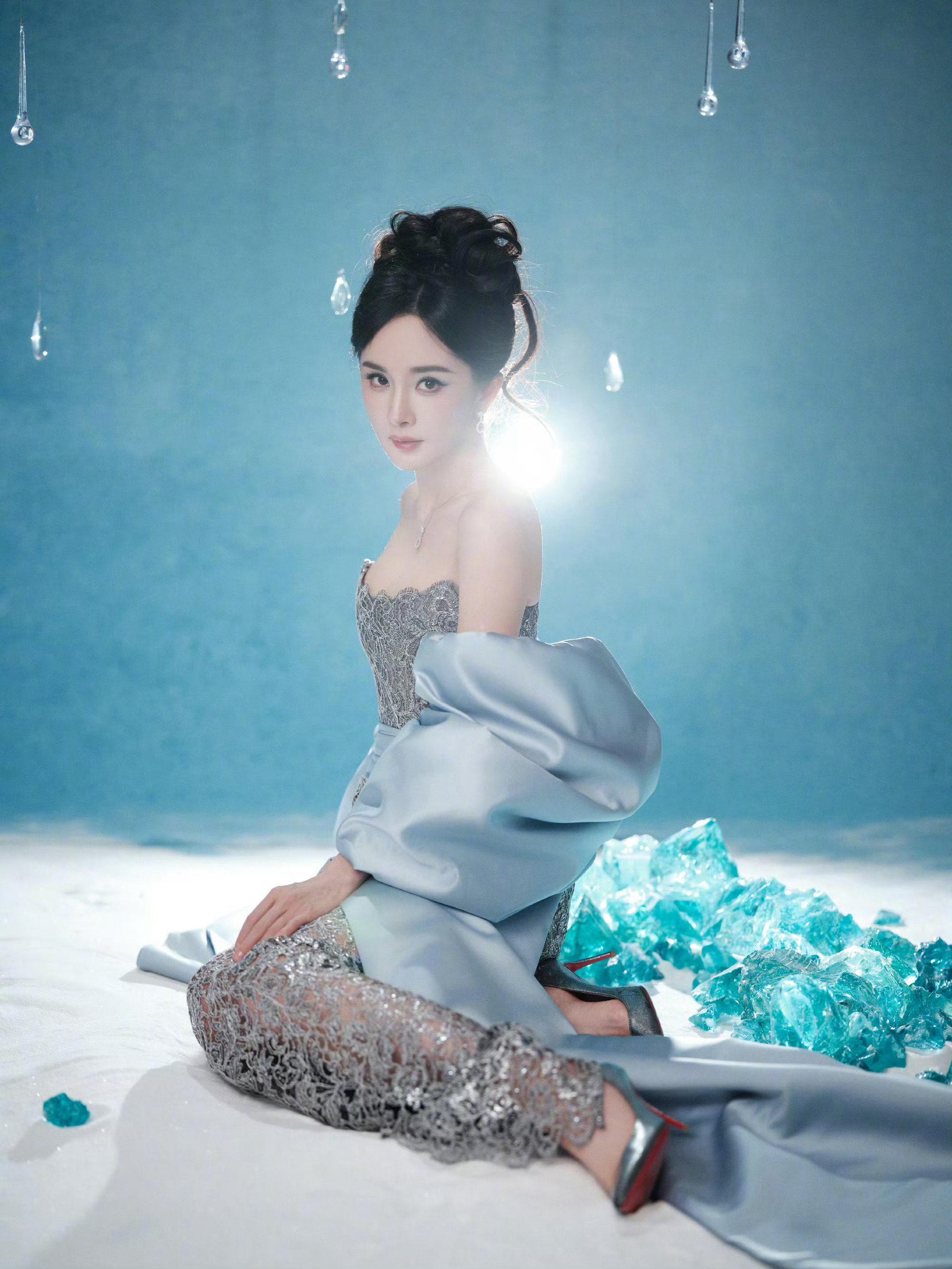 杨幂蓝色镂空裙杨幂身穿一件银色的亮片露背连衣裙,展现出她的优雅和时尚。裙子上有