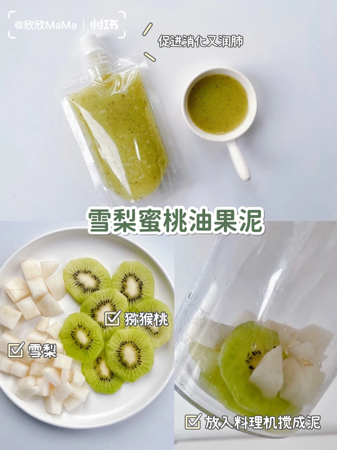 水果洗干净切块、放入果汁机或者料理机加入适量温水或奶搅打细腻。小宝宝可以用勺子喂着吃,大点的宝宝可以用吸吸袋吃,真的炒鸡方便