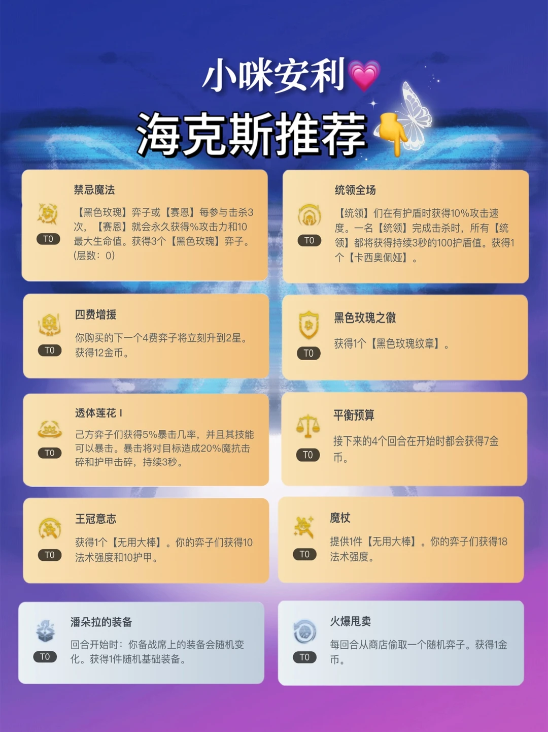 🌟海克斯推荐2战力1经济!如果经济不好1战力2经济也可以!这套构成都为高费卡!