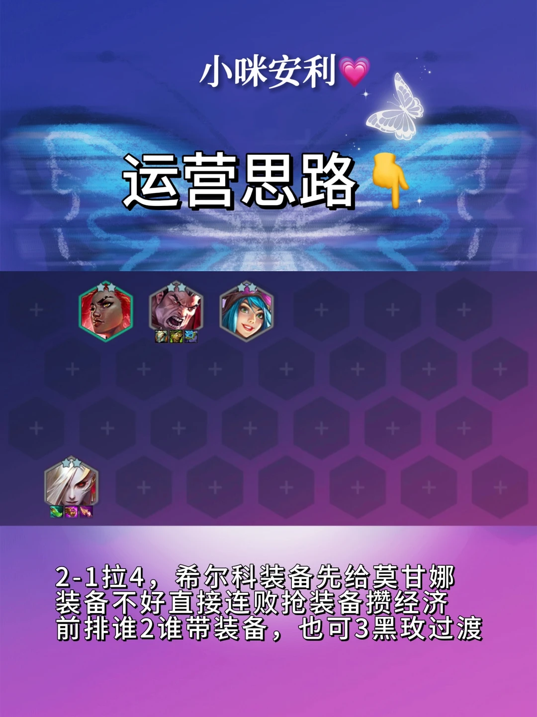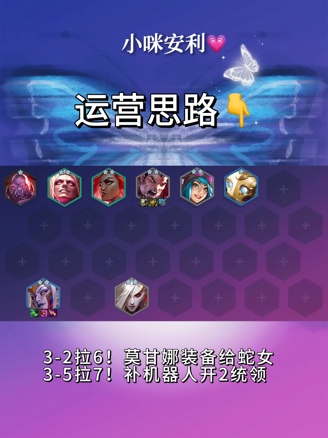 3️⃣阶段3-2拉6!3-5拉7!这个阶段希尔科装备先给蛇女过渡一下!走精致连败也可!经济很重要!