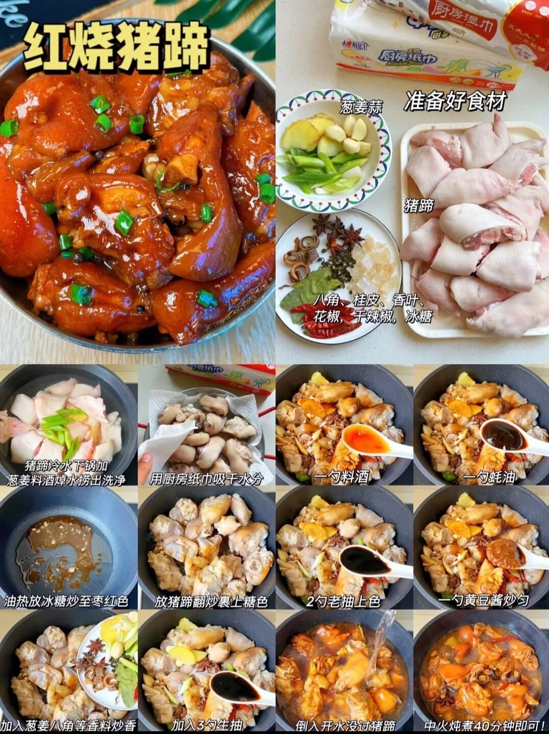 马上就要过年了,铁铁们还不选一个你最喜欢的菜学一下 酱汁来了:料酒一勺 两勺生抽 一勺老抽 两勺白糖 两勺醋后 加入葱姜蒜,加水 大火烧开转小焖煮半小时以上 最后转大火收汁!