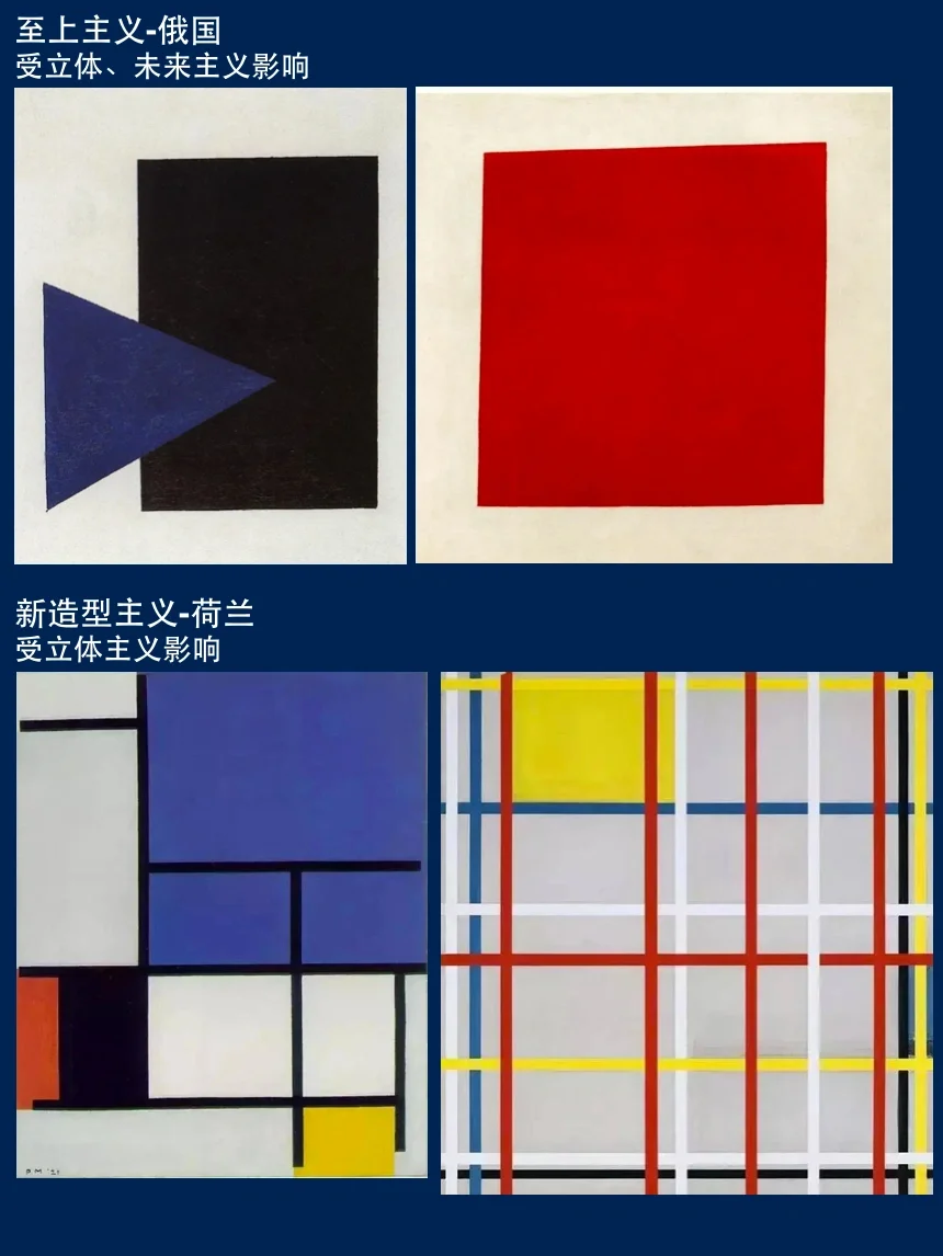 这一时期,世界各地艺术流派层出不穷,法国的象征主义、德国的表现主义走心,俄国的至上主义、荷兰的新造型主义走形。