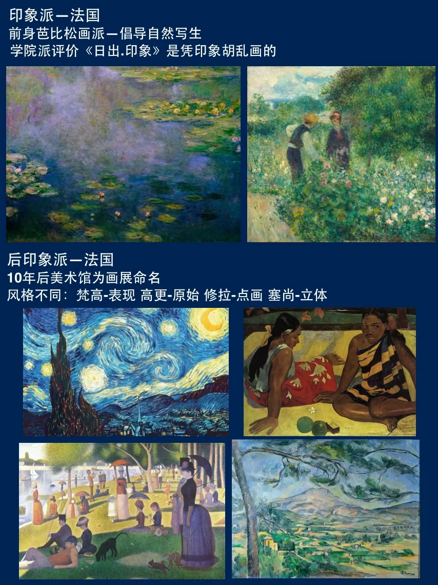 梵高的画情感浓烈、高更的画暗藏隐喻、修拉的画以点着色、塞尚的画沉迷造型。他们之所以被归为一派,只因为美术馆要为他们的展览起个有噱头的名字。