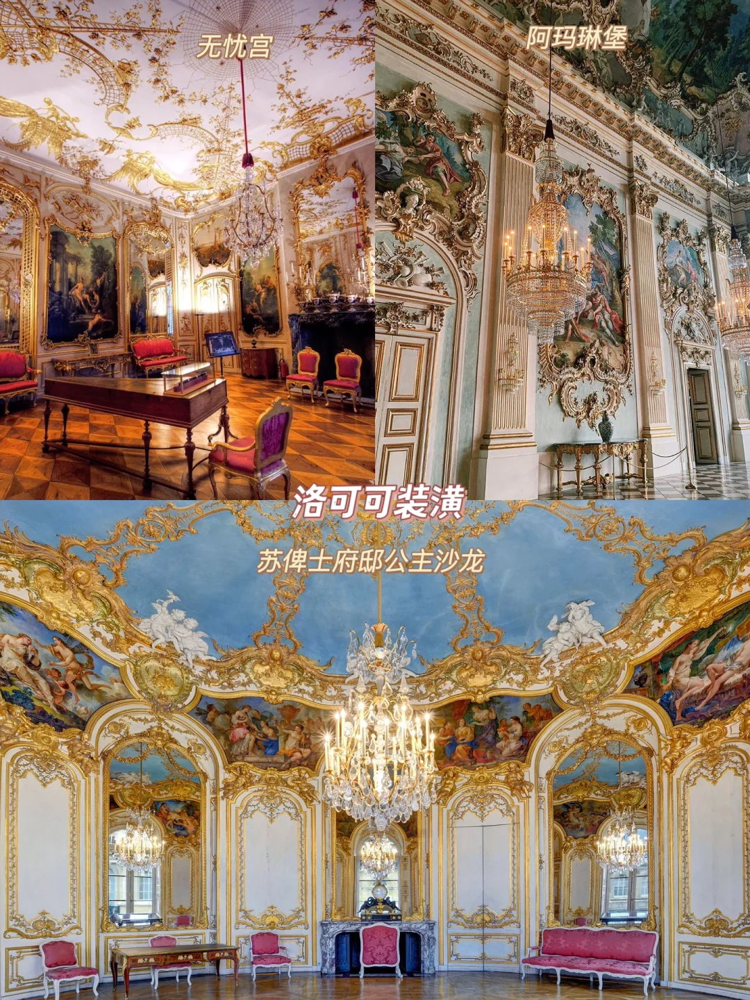 如今,我们在凡尔赛宫部分居室、苏俾士府邸的公主沙龙、宁芬堡的阿玛琳堡、奥拉宁堡的中国宫、波茨坦的无忧宫内,都能看到经典的洛可可设计。