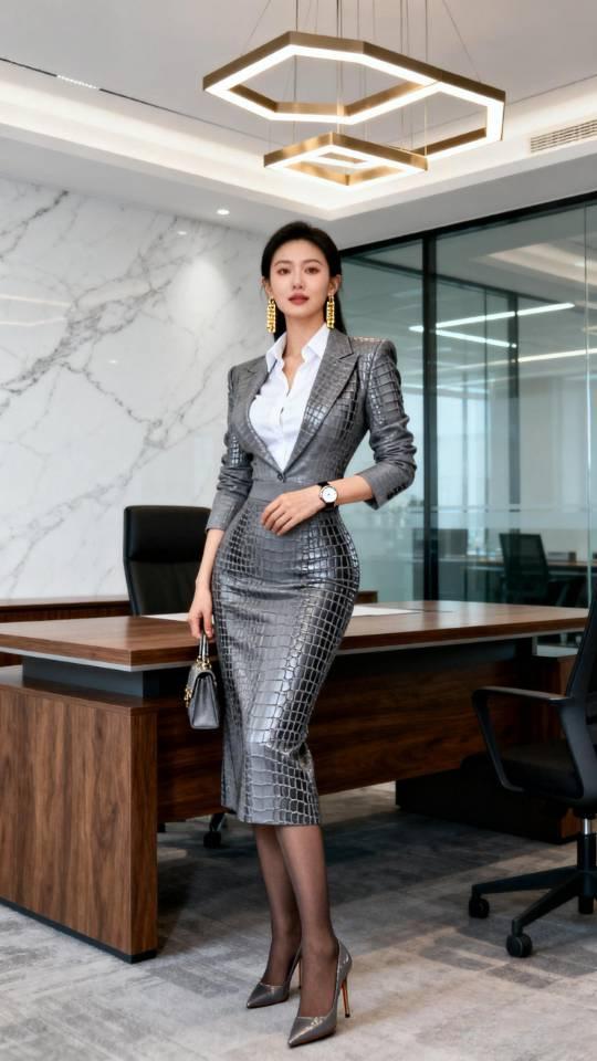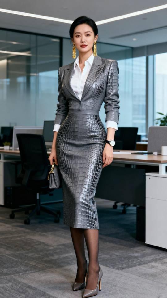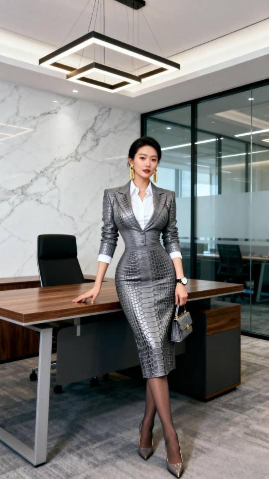 职业皮套装裙:短西装+半身长裙。职业套装裙 美女壁纸