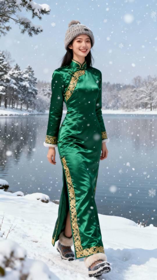 女子冬天穿的夹棉旗袍。旗袍 旗袍美女 美女壁纸 旗袍棉服