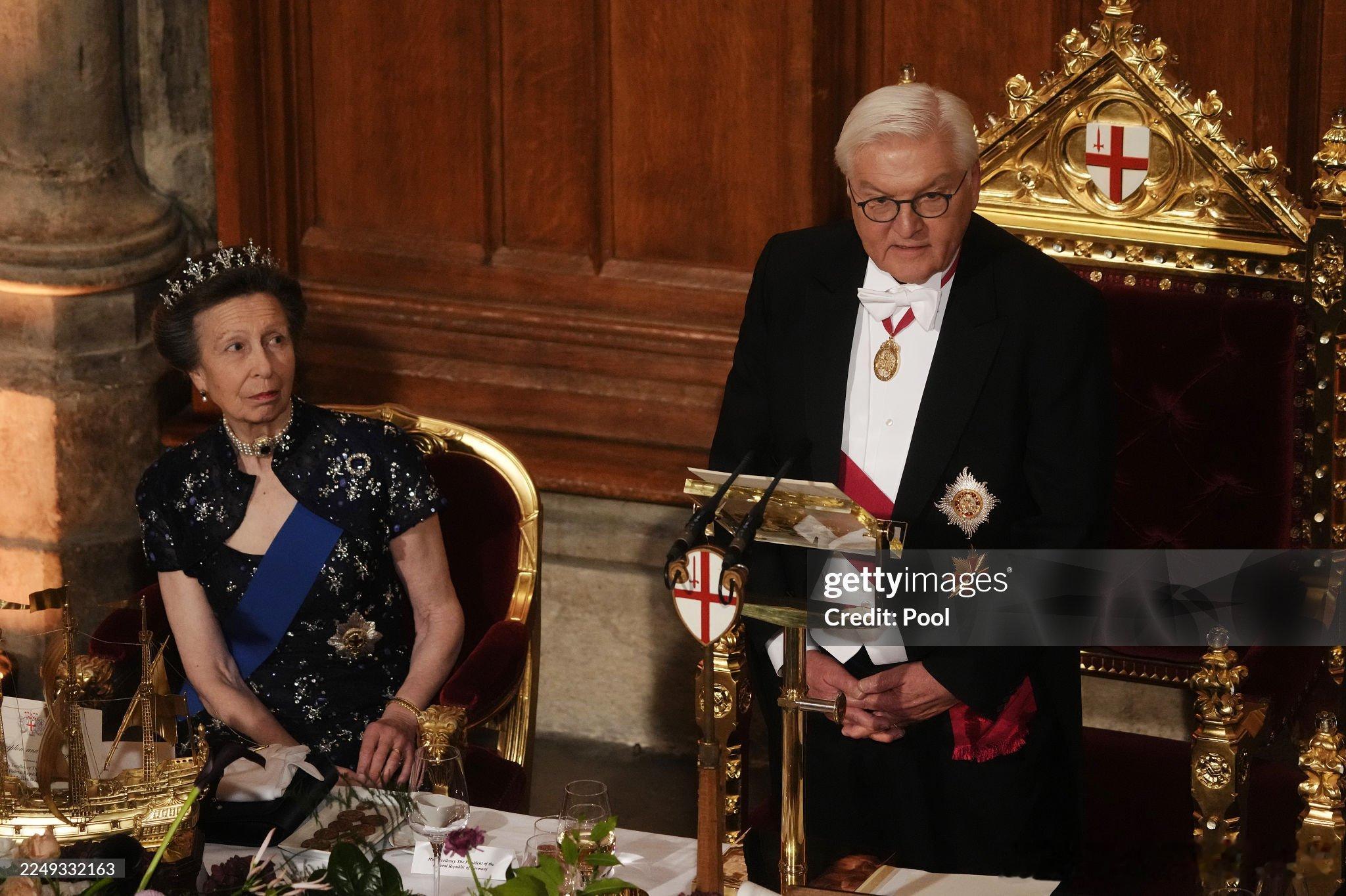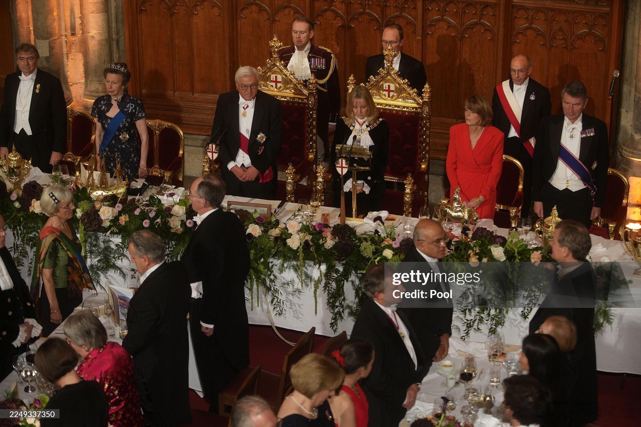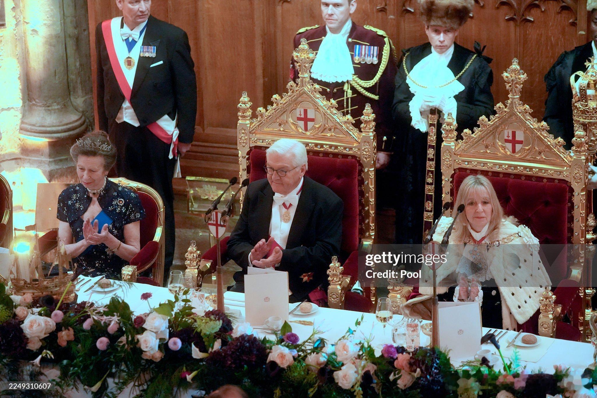 新闻 2025.12.4 德国国事访问英国Day 2,英国安妮长公主夫妇陪同德国总统夫妇出席伦敦金融城晚宴,这次轮到安妮夫妇出席了。