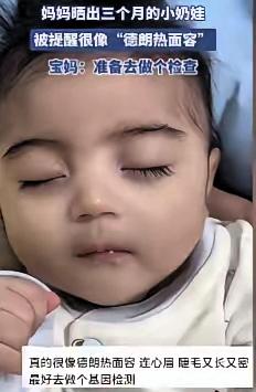 晒娃变救娃?河南的一位妈妈晒出了自己三个月的婴儿,但没想到评论区里面一片哗嘫,有网友指出这个小孩是德朗热面容,让妈妈赶紧带孩子去大医院做一个详细的基因检查。 谁能想到,晒个娃还能救命!河南宝妈随手发的宝宝熟睡视频,差点就错过罕见病的黄金干预期。 刚开始大家都在夸宝宝睫毛长、皮肤嫩,像个瓷娃娃,只有一位儿科护士网友急着留言,说连眉、低鼻梁这些特征是德朗热综合征的典型面容,还附上了诊疗指南截图。 宝妈一开始也觉得是危言耸听,可越看越慌,赶紧带娃去医院检查,结果真的确诊了。 万幸的是症状较轻,而且发现得早,医生说早干预就能大大改善预后。 这事儿真的刷新了对“晒娃”的认知,原来网络不只有杠精和隐私风险,还藏着陌生人的善意与专业。 很多罕见病初期症状不明显,家长容易忽略,而来自不同领域的网友,可能刚好能补上这份认知缺口。